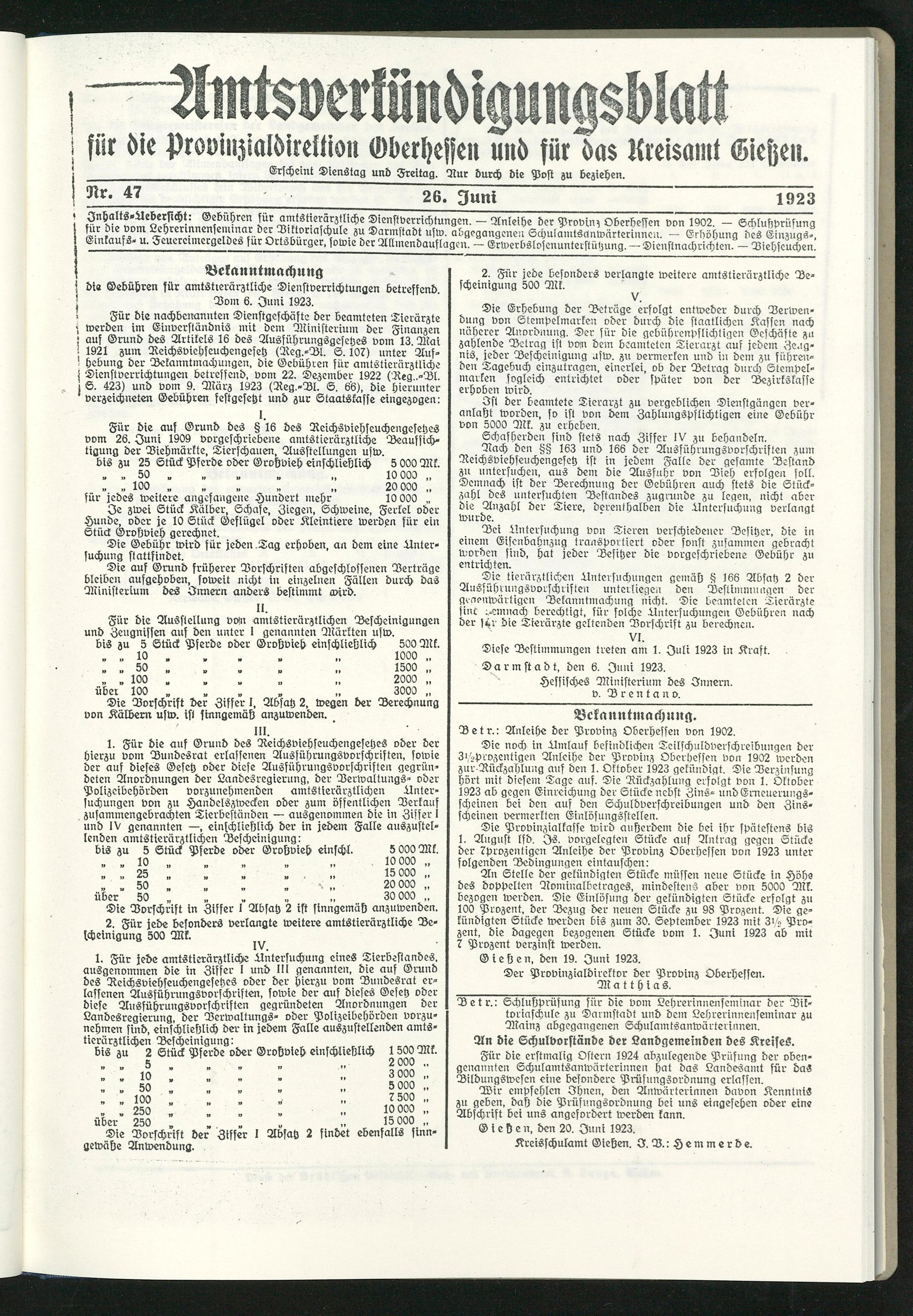 Amtsverkündigungsblatt für die Provinzialdirektion Oberhessen und der Kreisämter Gießen, Friedberg, Büdingen, Lauterbach, Schotten und Alsfeld. 1919-1937