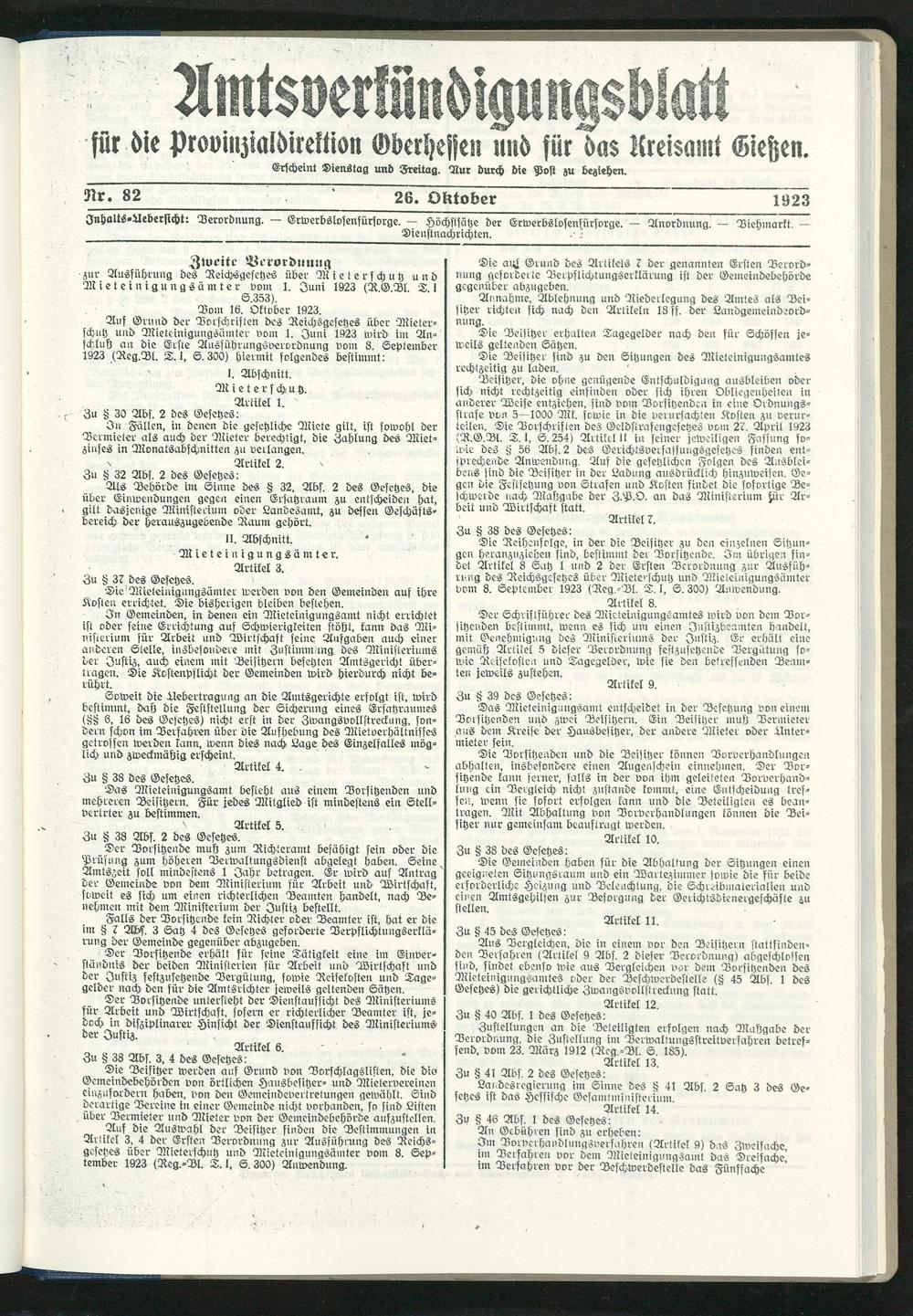 Amtsverkündigungsblatt für die Provinzialdirektion Oberhessen und der Kreisämter Gießen, Friedberg, Büdingen, Lauterbach, Schotten und Alsfeld. 1919-1937
