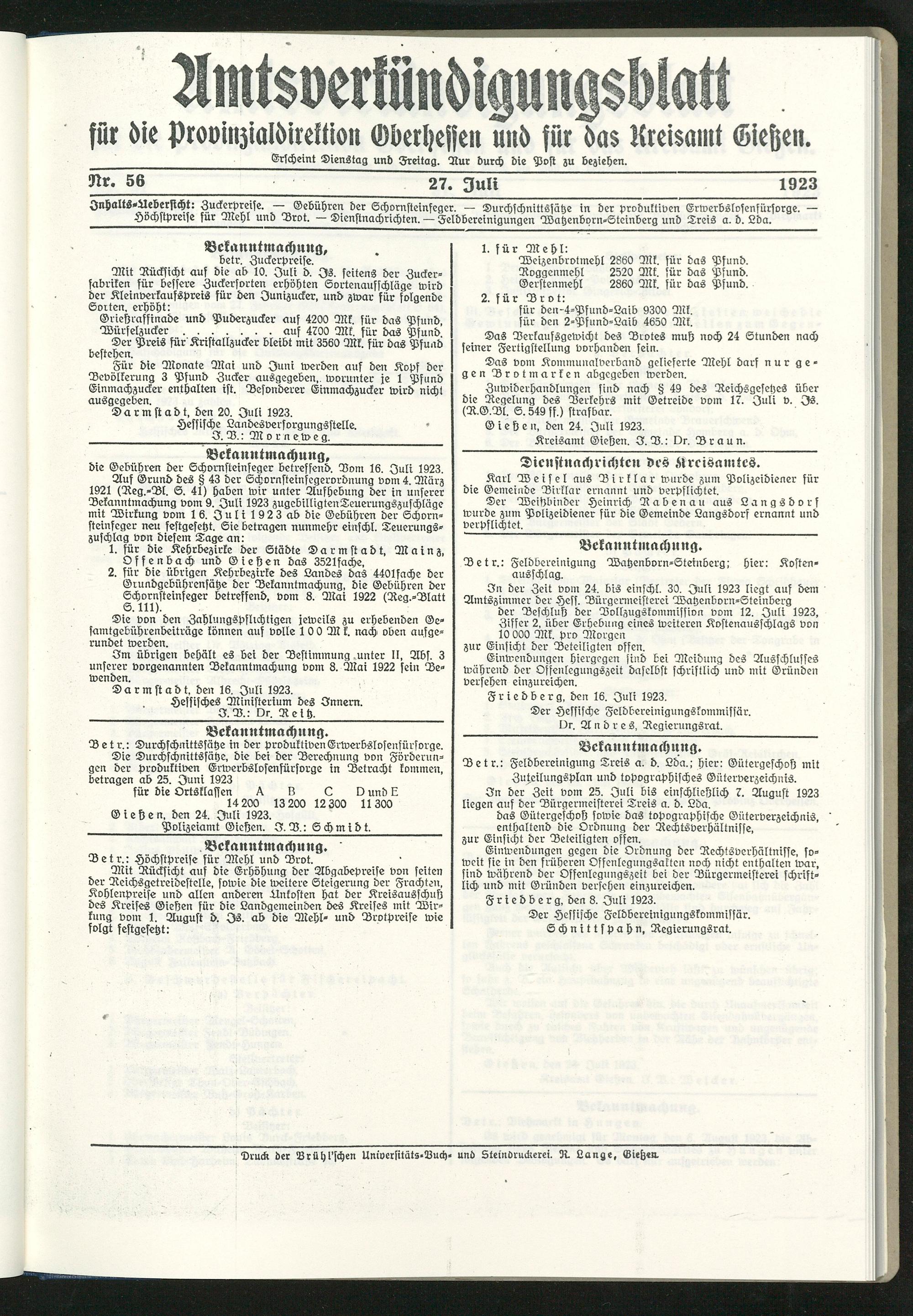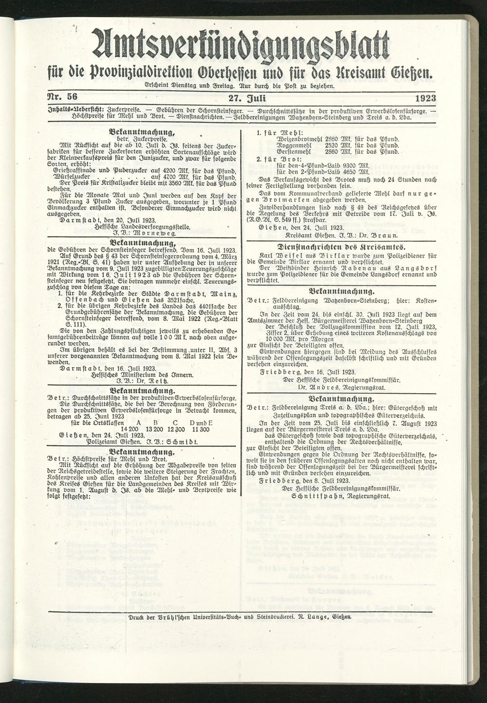 Amtsverkündigungsblatt für die Provinzialdirektion Oberhessen und der Kreisämter Gießen, Friedberg, Büdingen, Lauterbach, Schotten und Alsfeld. 1919-1937