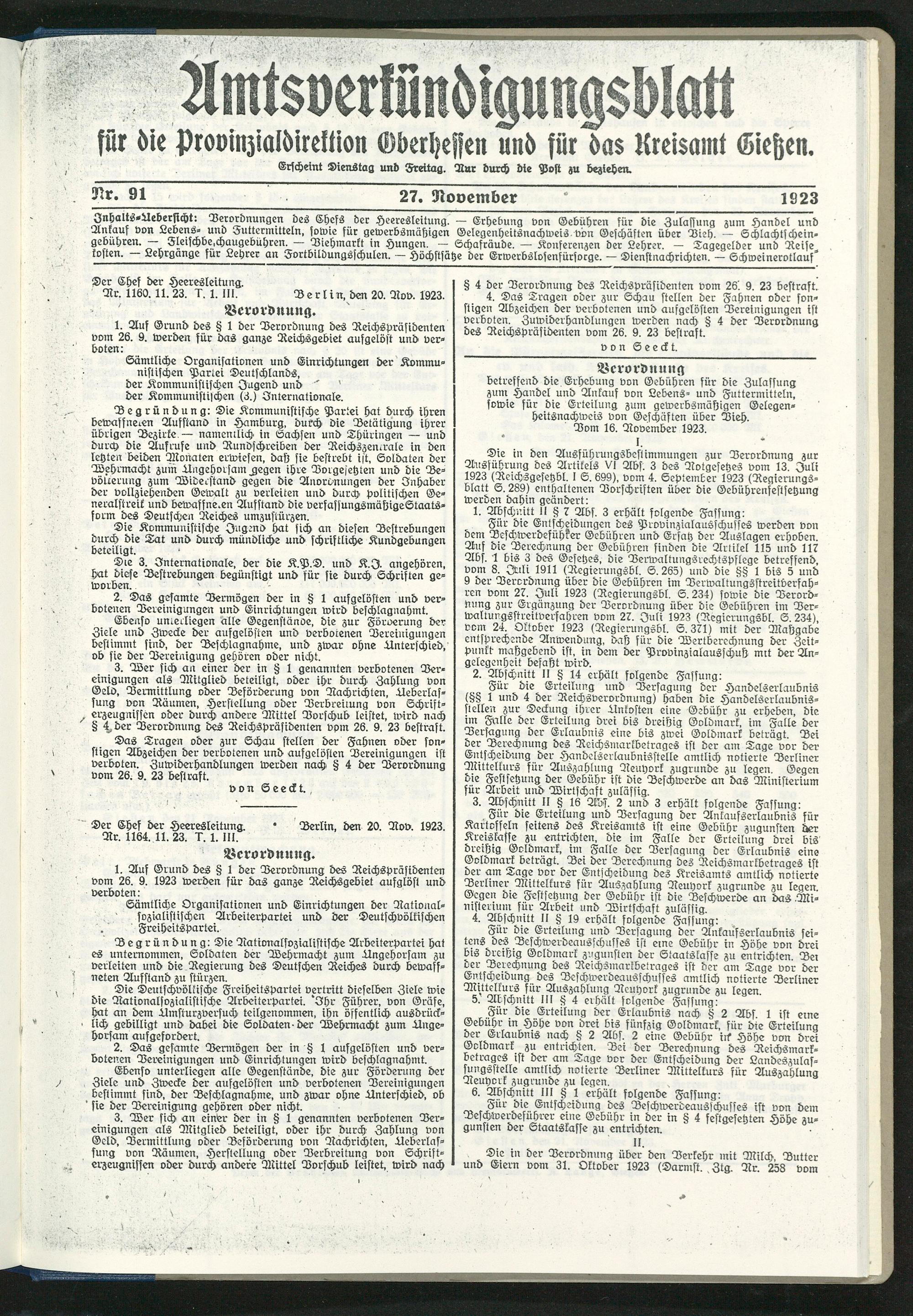 Amtsverkündigungsblatt für die Provinzialdirektion Oberhessen und der Kreisämter Gießen, Friedberg, Büdingen, Lauterbach, Schotten und Alsfeld. 1919-1937