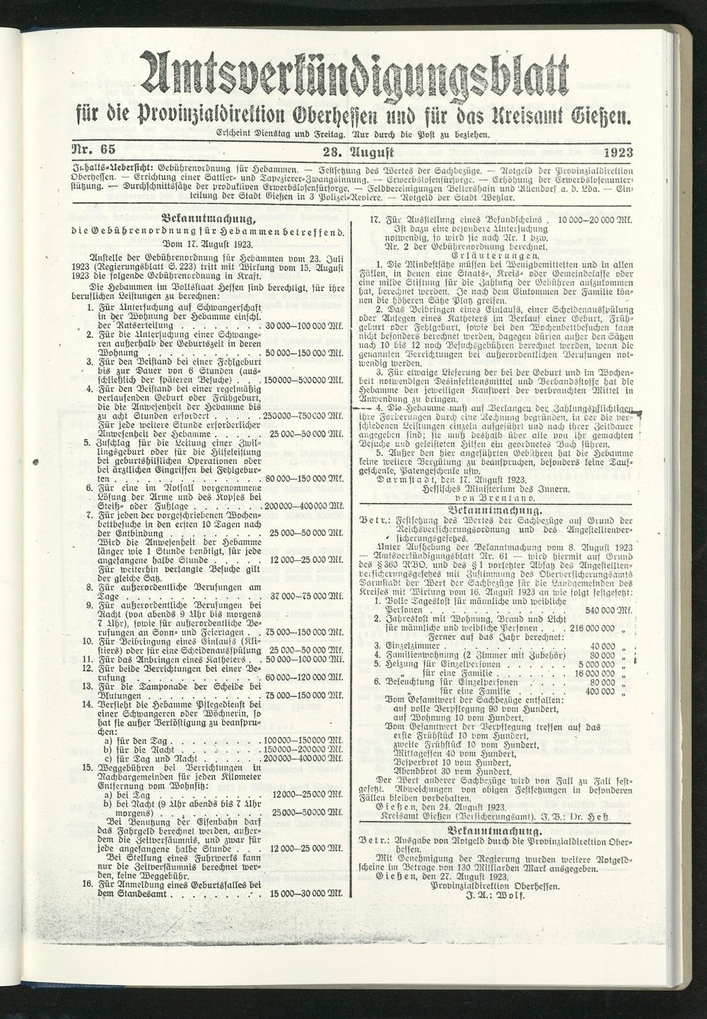 Amtsverkündigungsblatt für die Provinzialdirektion Oberhessen und der Kreisämter Gießen, Friedberg, Büdingen, Lauterbach, Schotten und Alsfeld. 1919-1937