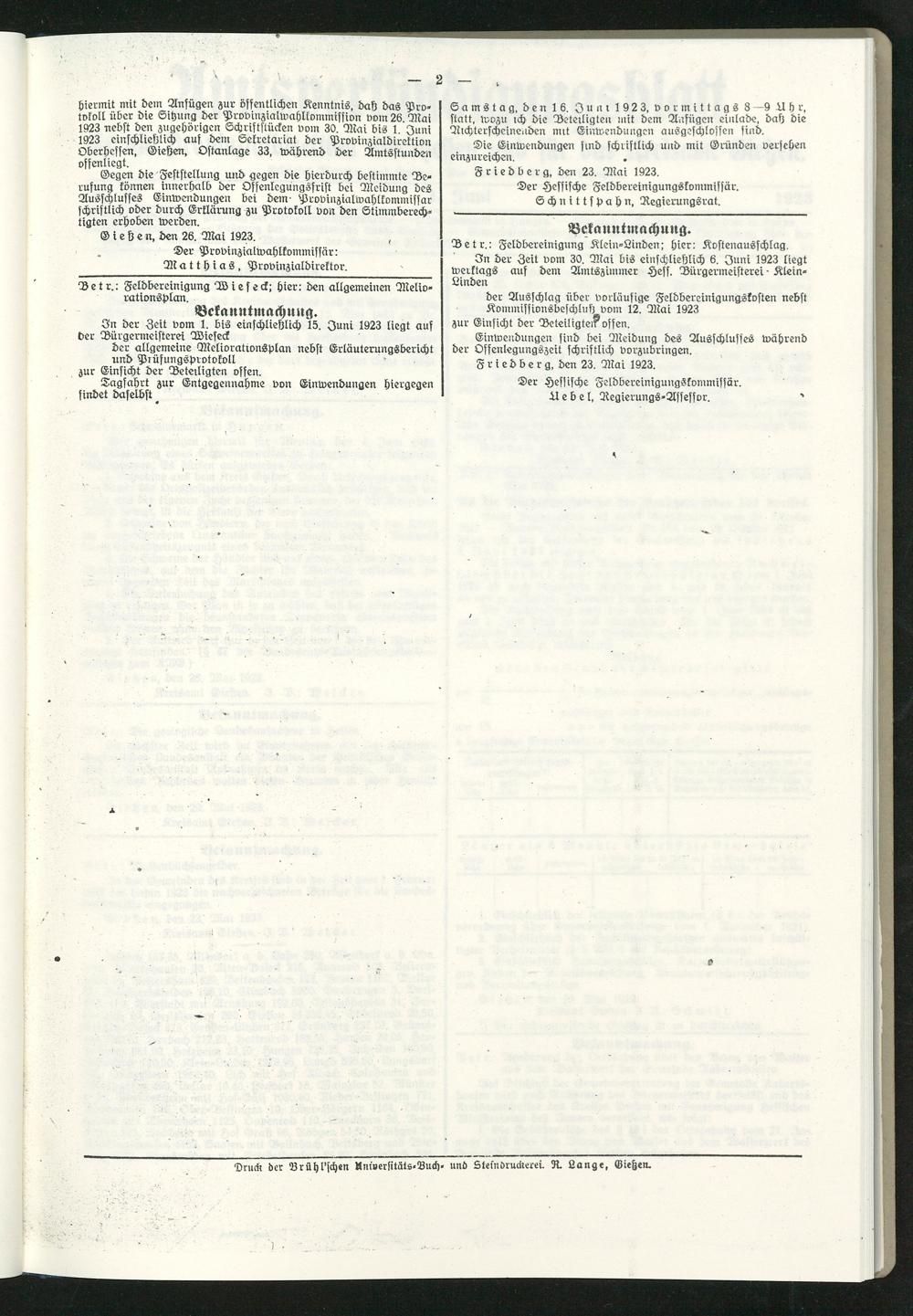 Amtsverkündigungsblatt für die Provinzialdirektion Oberhessen und der Kreisämter Gießen, Friedberg, Büdingen, Lauterbach, Schotten und Alsfeld. 1919-1937
