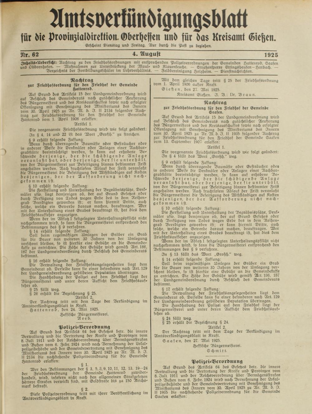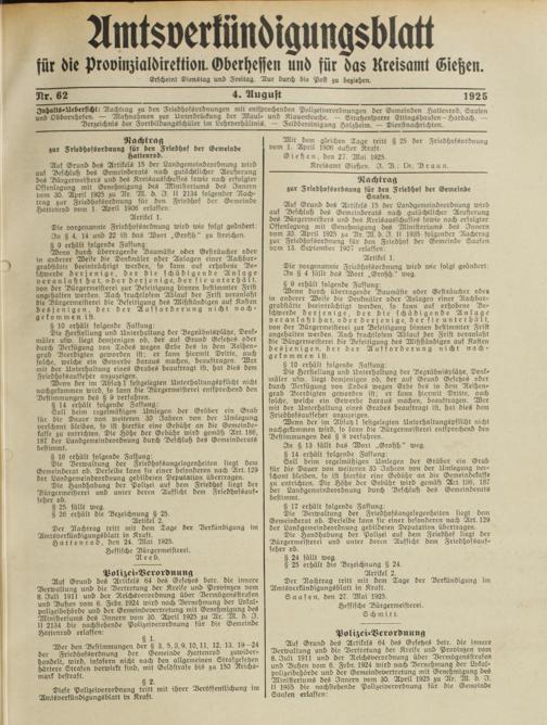Amtsverkündigungsblatt für die Provinzialdirektion Oberhessen und der Kreisämter Gießen, Friedberg, Büdingen, Lauterbach, Schotten und Alsfeld. 1919-1937