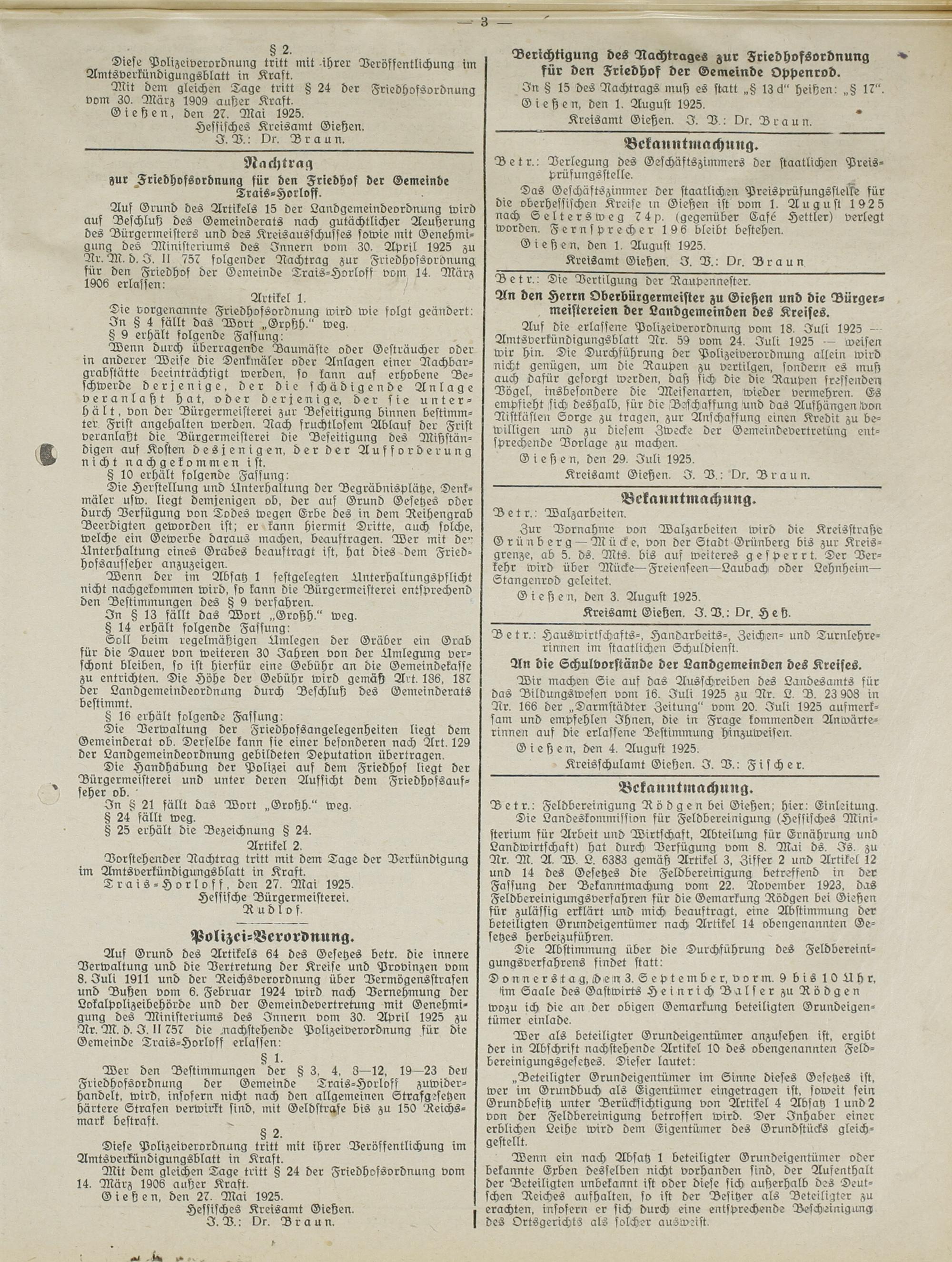Amtsverkündigungsblatt für die Provinzialdirektion Oberhessen und der Kreisämter Gießen, Friedberg, Büdingen, Lauterbach, Schotten und Alsfeld. 1919-1937