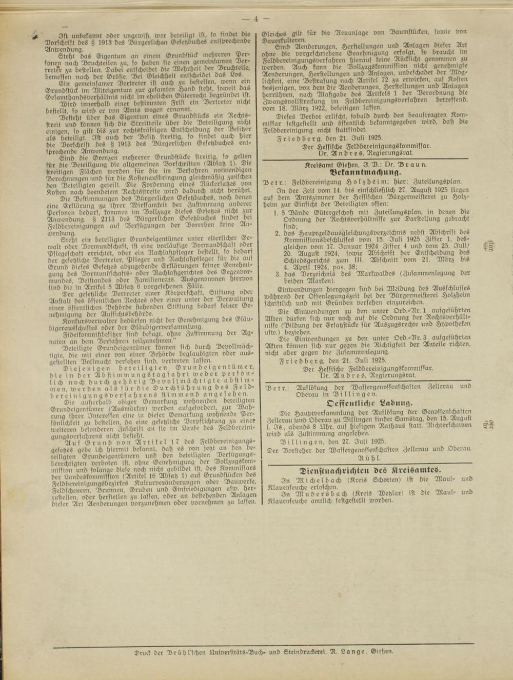 Amtsverkündigungsblatt für die Provinzialdirektion Oberhessen und der Kreisämter Gießen, Friedberg, Büdingen, Lauterbach, Schotten und Alsfeld. 1919-1937