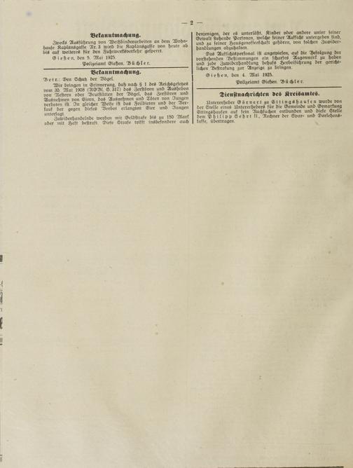 Amtsverkündigungsblatt für die Provinzialdirektion Oberhessen und der Kreisämter Gießen, Friedberg, Büdingen, Lauterbach, Schotten und Alsfeld. 1919-1937