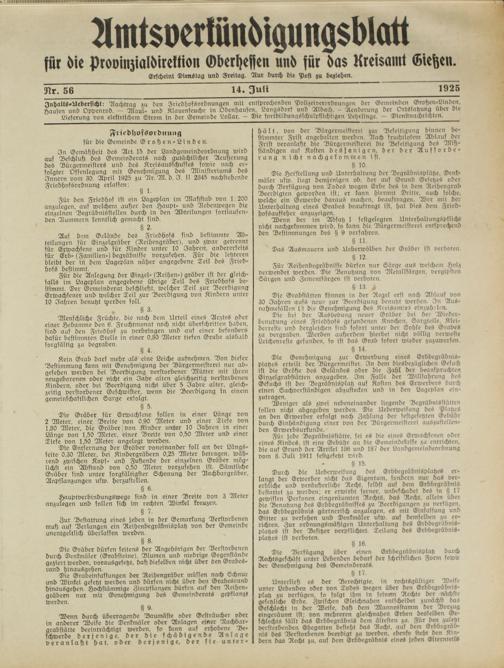Amtsverkündigungsblatt für die Provinzialdirektion Oberhessen und der Kreisämter Gießen, Friedberg, Büdingen, Lauterbach, Schotten und Alsfeld. 1919-1937