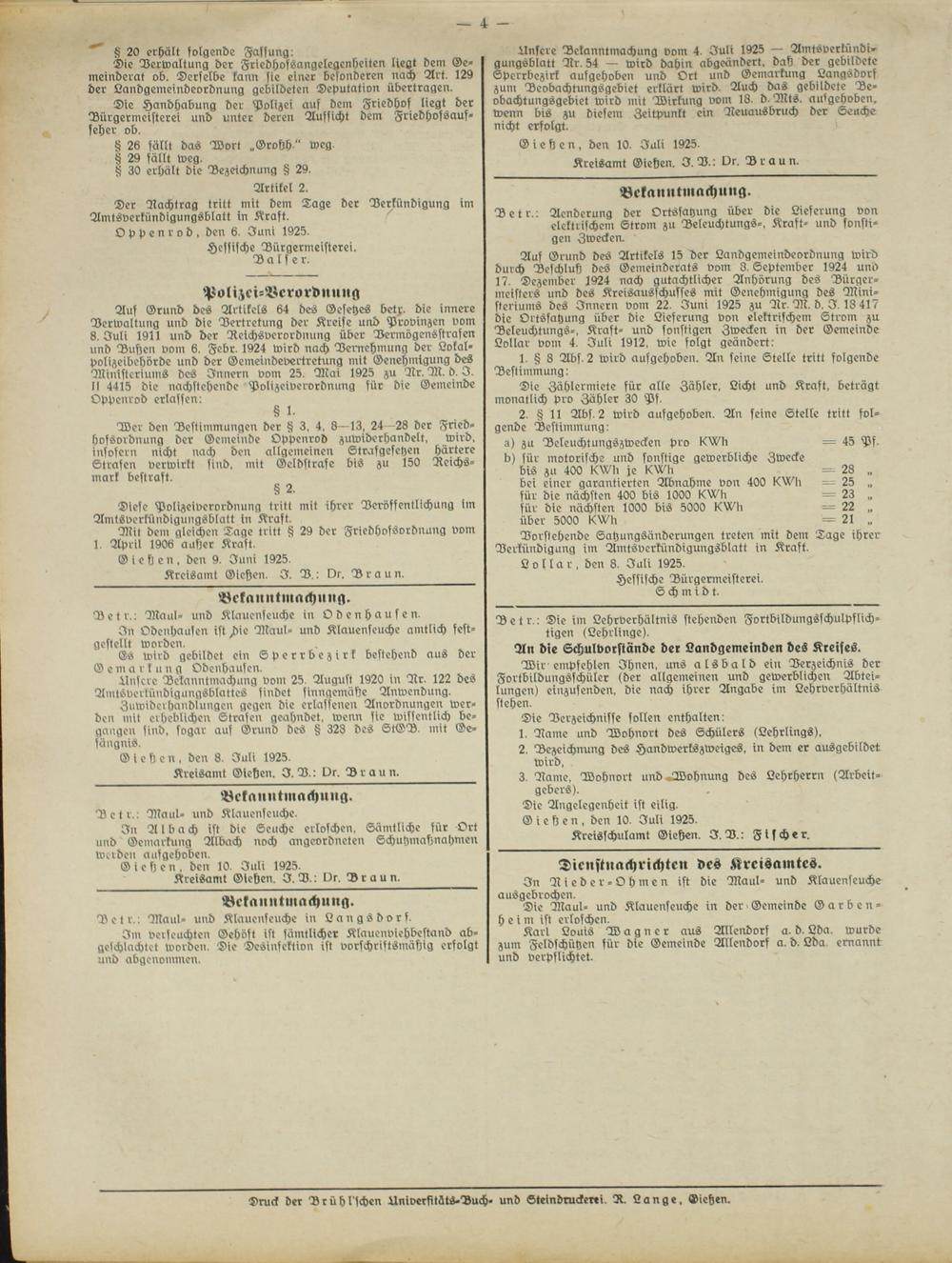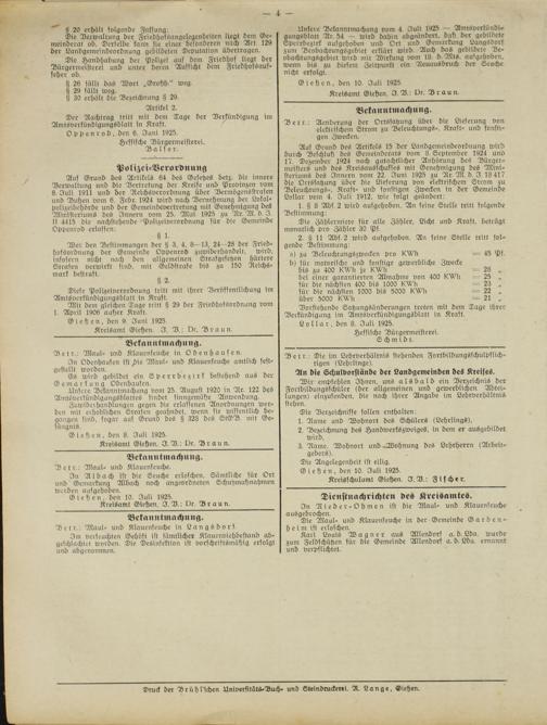 Amtsverkündigungsblatt für die Provinzialdirektion Oberhessen und der Kreisämter Gießen, Friedberg, Büdingen, Lauterbach, Schotten und Alsfeld. 1919-1937