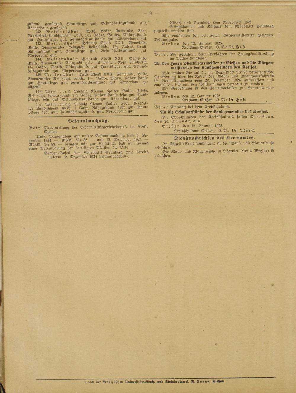 Amtsverkündigungsblatt für die Provinzialdirektion Oberhessen und der Kreisämter Gießen, Friedberg, Büdingen, Lauterbach, Schotten und Alsfeld. 1919-1937