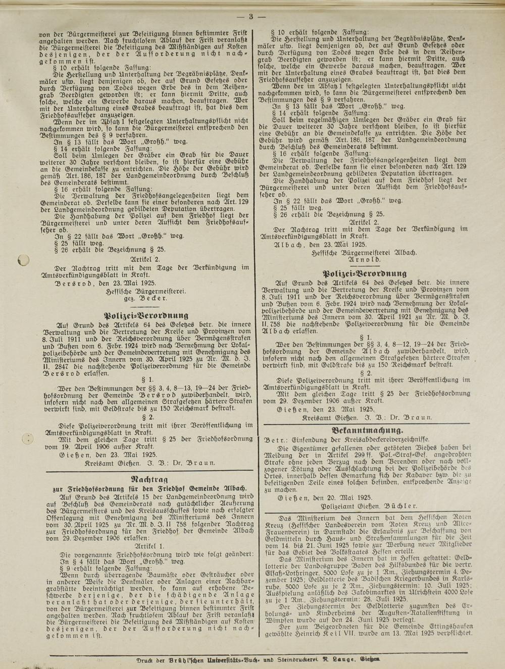 Amtsverkündigungsblatt für die Provinzialdirektion Oberhessen und der Kreisämter Gießen, Friedberg, Büdingen, Lauterbach, Schotten und Alsfeld. 1919-1937