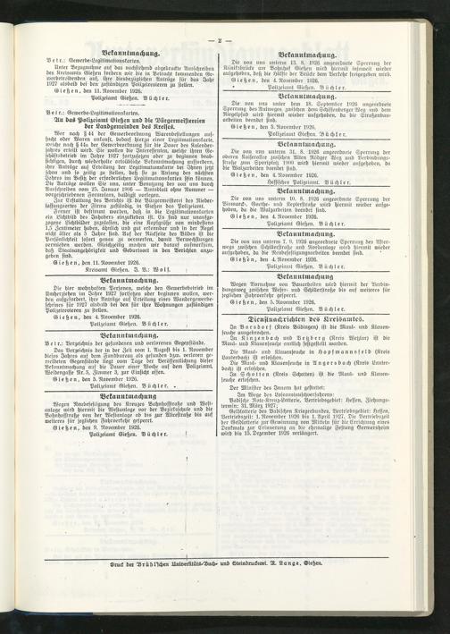 Amtsverkündigungsblatt für die Provinzialdirektion Oberhessen und der Kreisämter Gießen, Friedberg, Büdingen, Lauterbach, Schotten und Alsfeld. 1919-1937