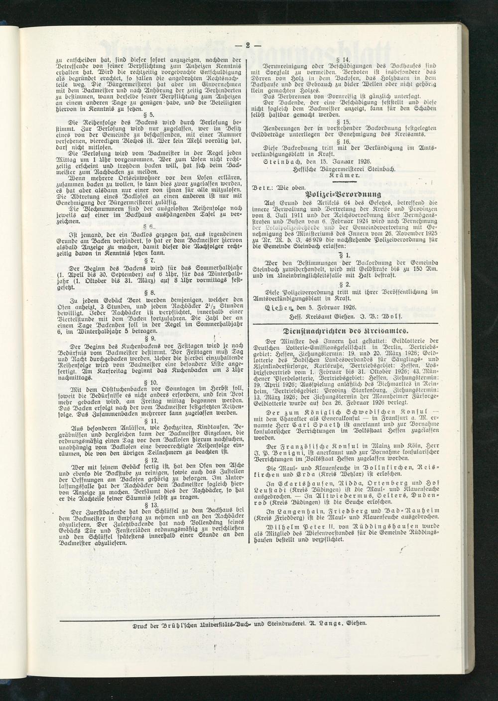 Amtsverkündigungsblatt für die Provinzialdirektion Oberhessen und der Kreisämter Gießen, Friedberg, Büdingen, Lauterbach, Schotten und Alsfeld. 1919-1937