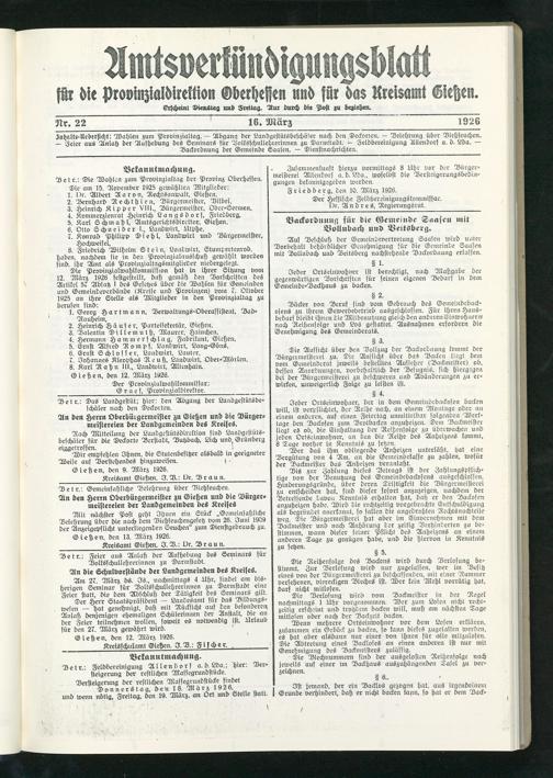 Amtsverkündigungsblatt für die Provinzialdirektion Oberhessen und der Kreisämter Gießen, Friedberg, Büdingen, Lauterbach, Schotten und Alsfeld. 1919-1937