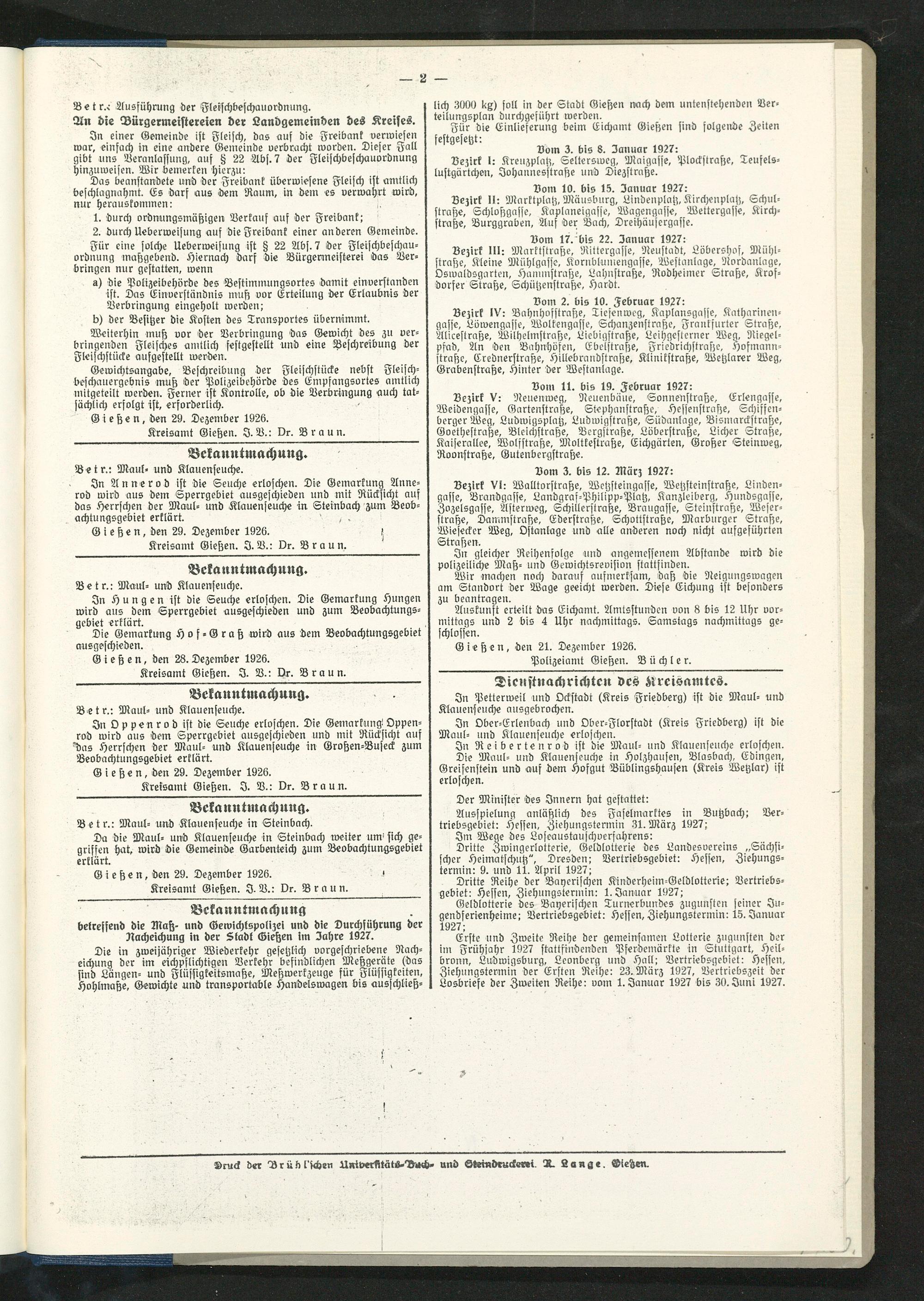 Amtsverkündigungsblatt für die Provinzialdirektion Oberhessen und der Kreisämter Gießen, Friedberg, Büdingen, Lauterbach, Schotten und Alsfeld. 1919-1937