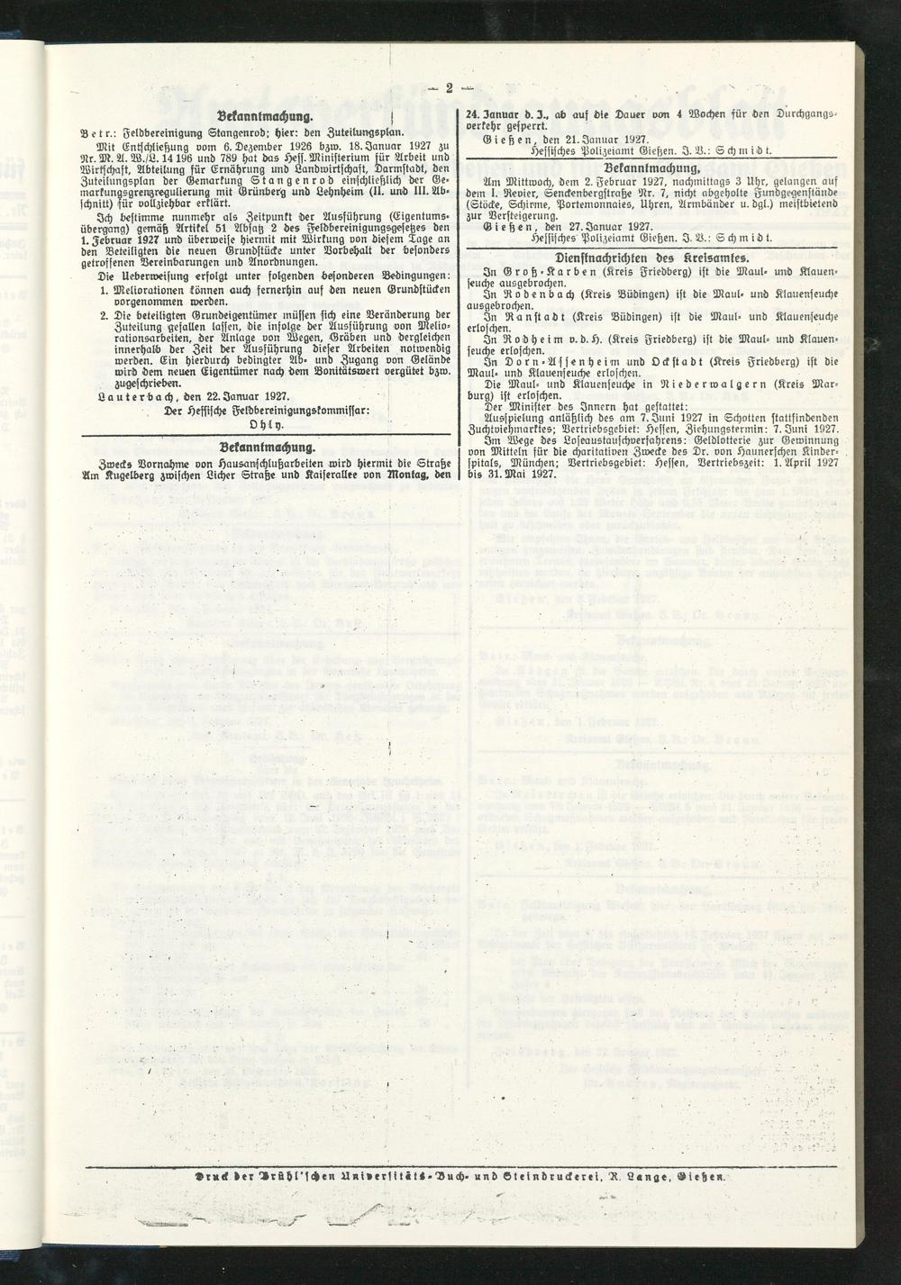 Amtsverkündigungsblatt für die Provinzialdirektion Oberhessen und der Kreisämter Gießen, Friedberg, Büdingen, Lauterbach, Schotten und Alsfeld. 1919-1937