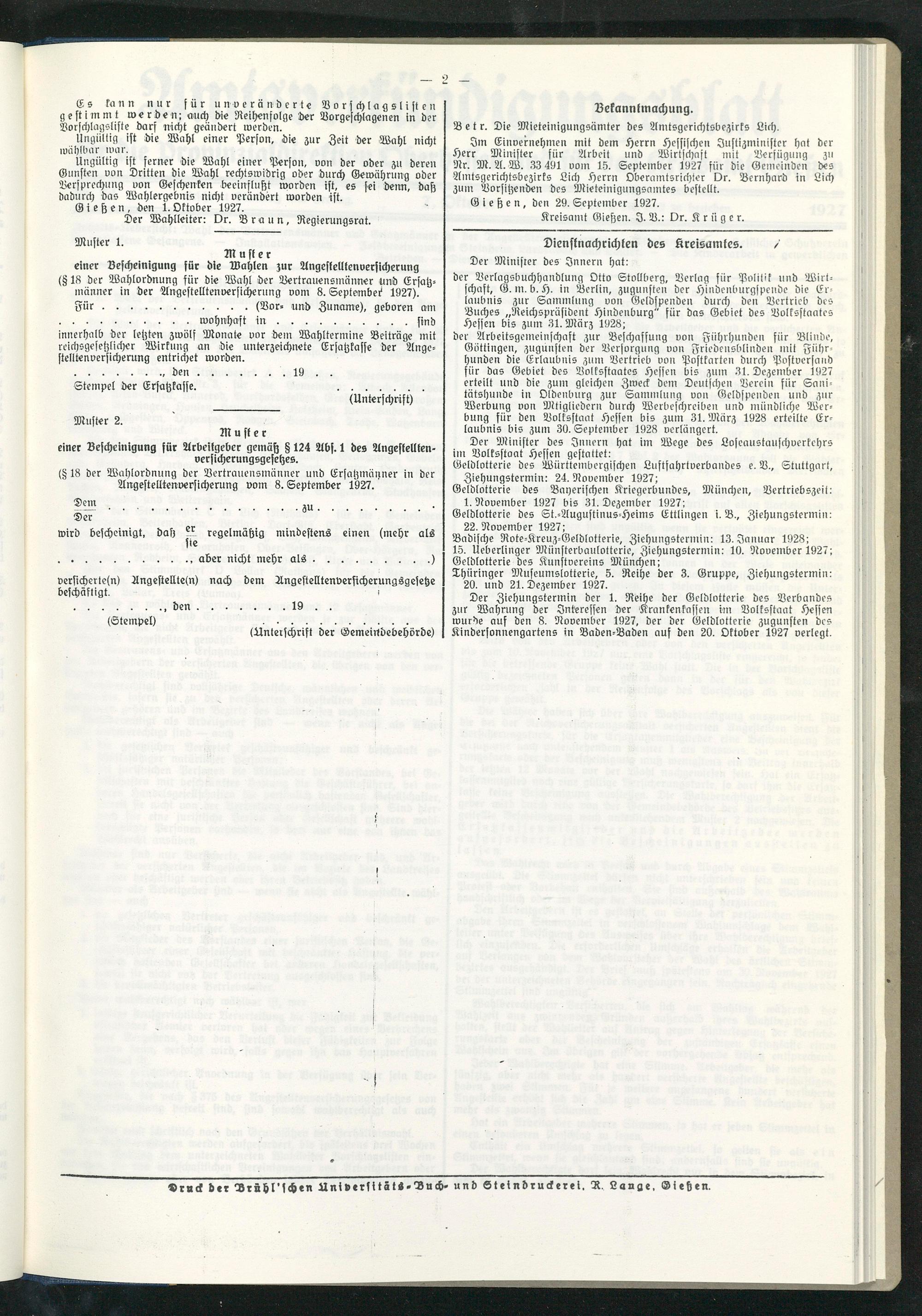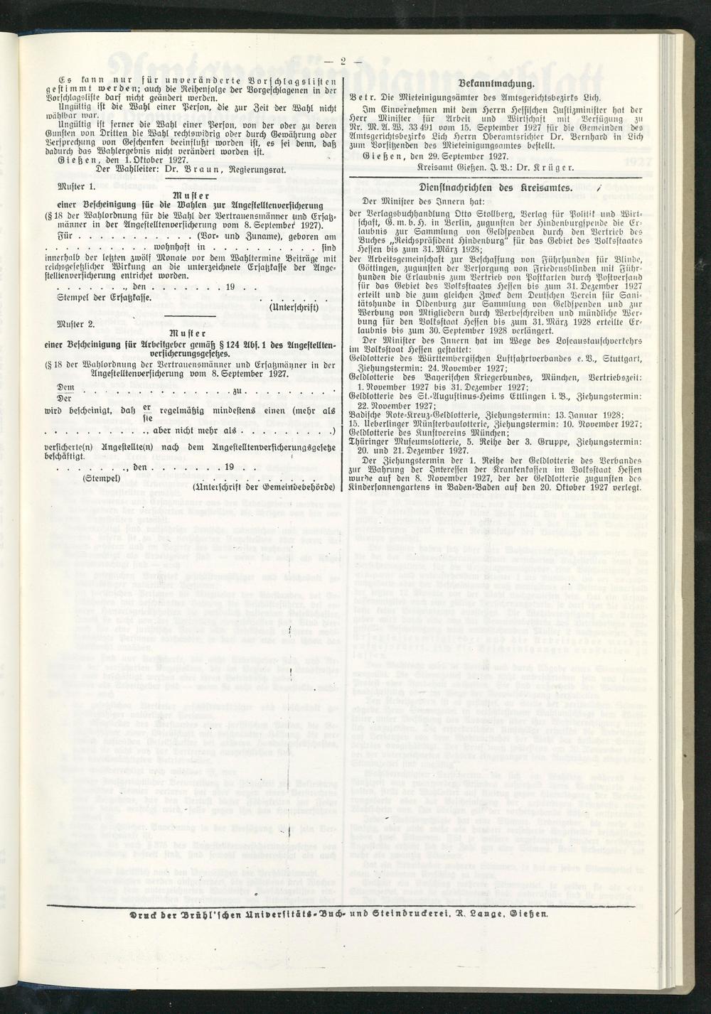 Amtsverkündigungsblatt für die Provinzialdirektion Oberhessen und der Kreisämter Gießen, Friedberg, Büdingen, Lauterbach, Schotten und Alsfeld. 1919-1937