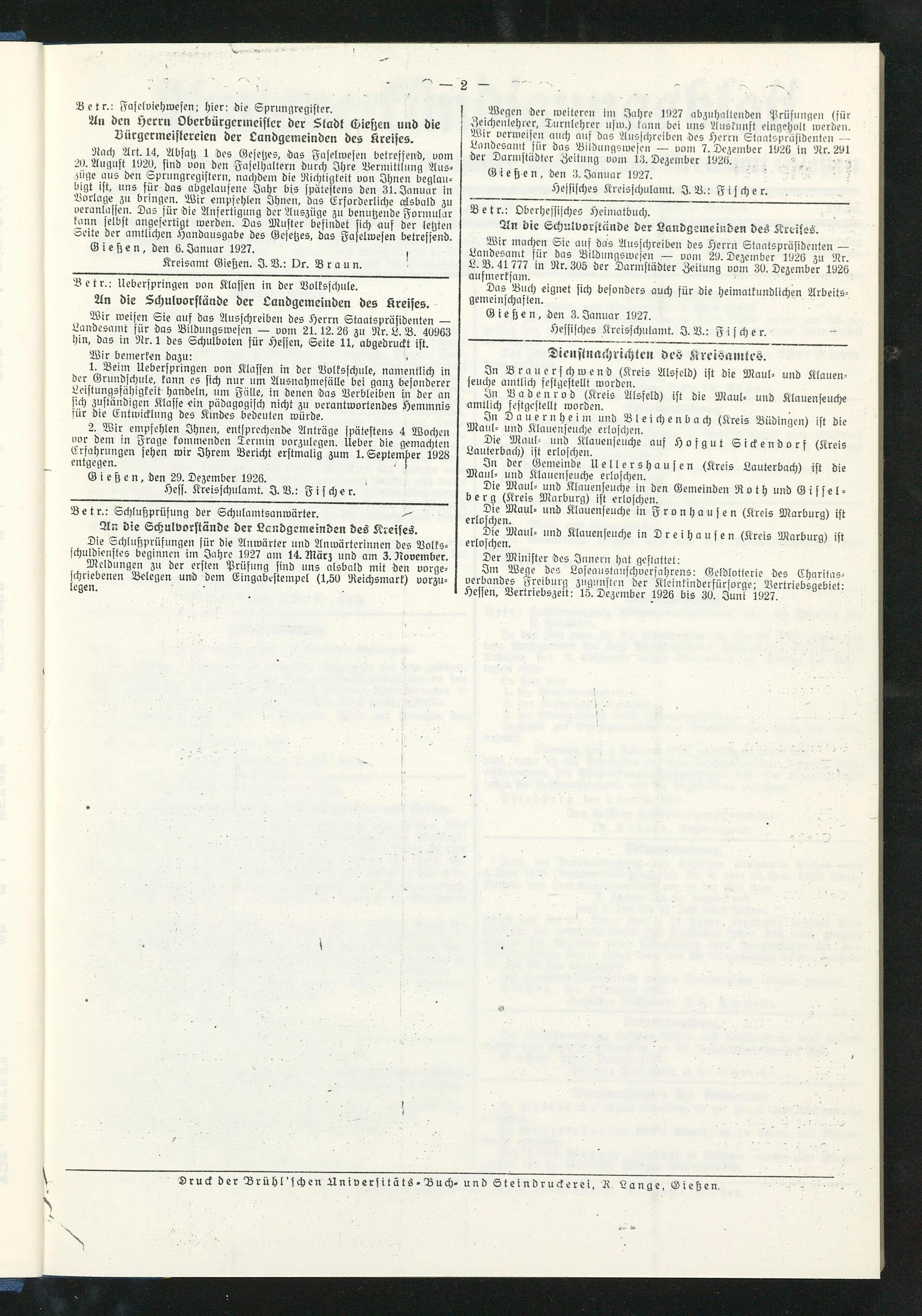 Amtsverkündigungsblatt für die Provinzialdirektion Oberhessen und der Kreisämter Gießen, Friedberg, Büdingen, Lauterbach, Schotten und Alsfeld. 1919-1937