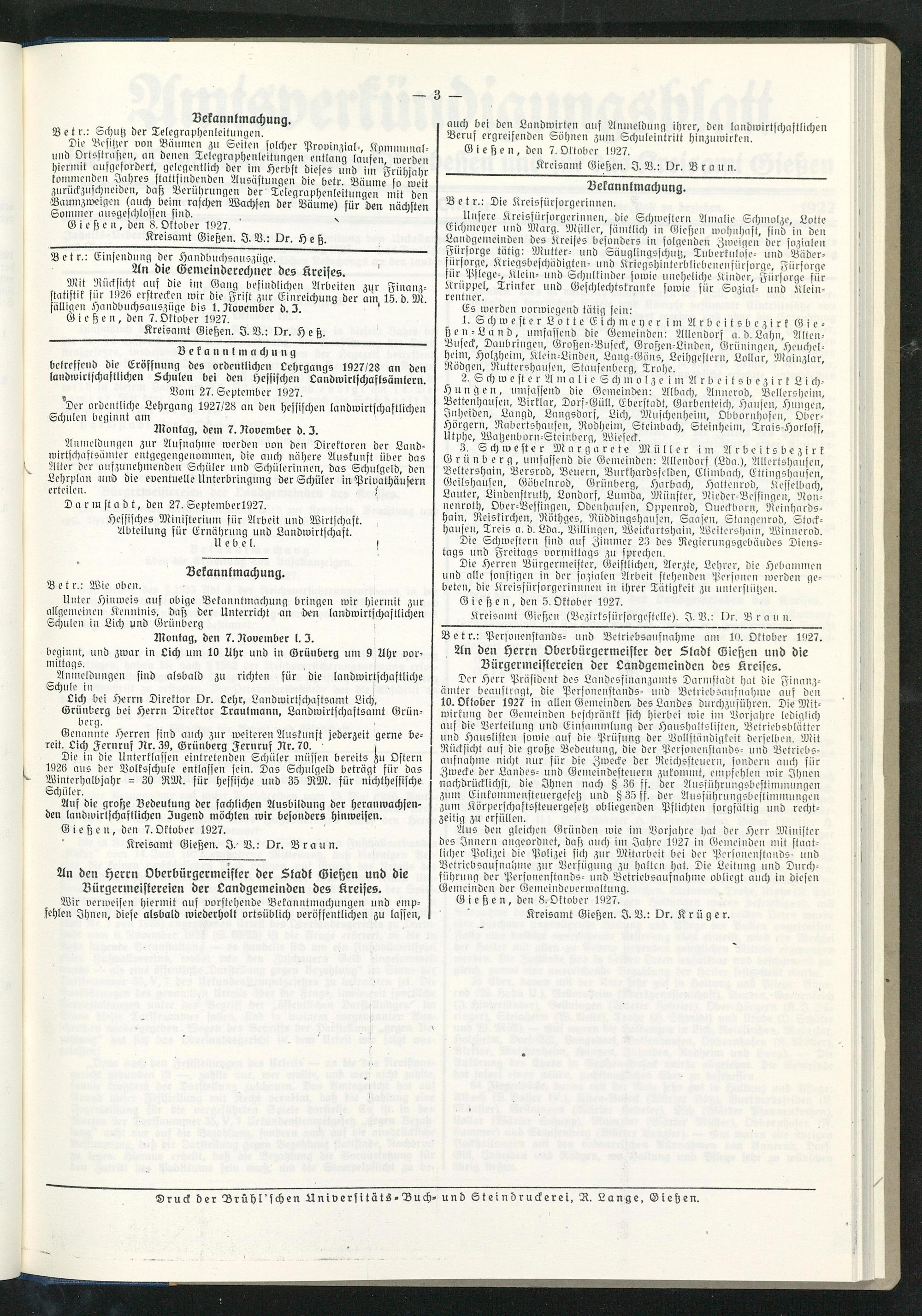 Amtsverkündigungsblatt für die Provinzialdirektion Oberhessen und der Kreisämter Gießen, Friedberg, Büdingen, Lauterbach, Schotten und Alsfeld. 1919-1937