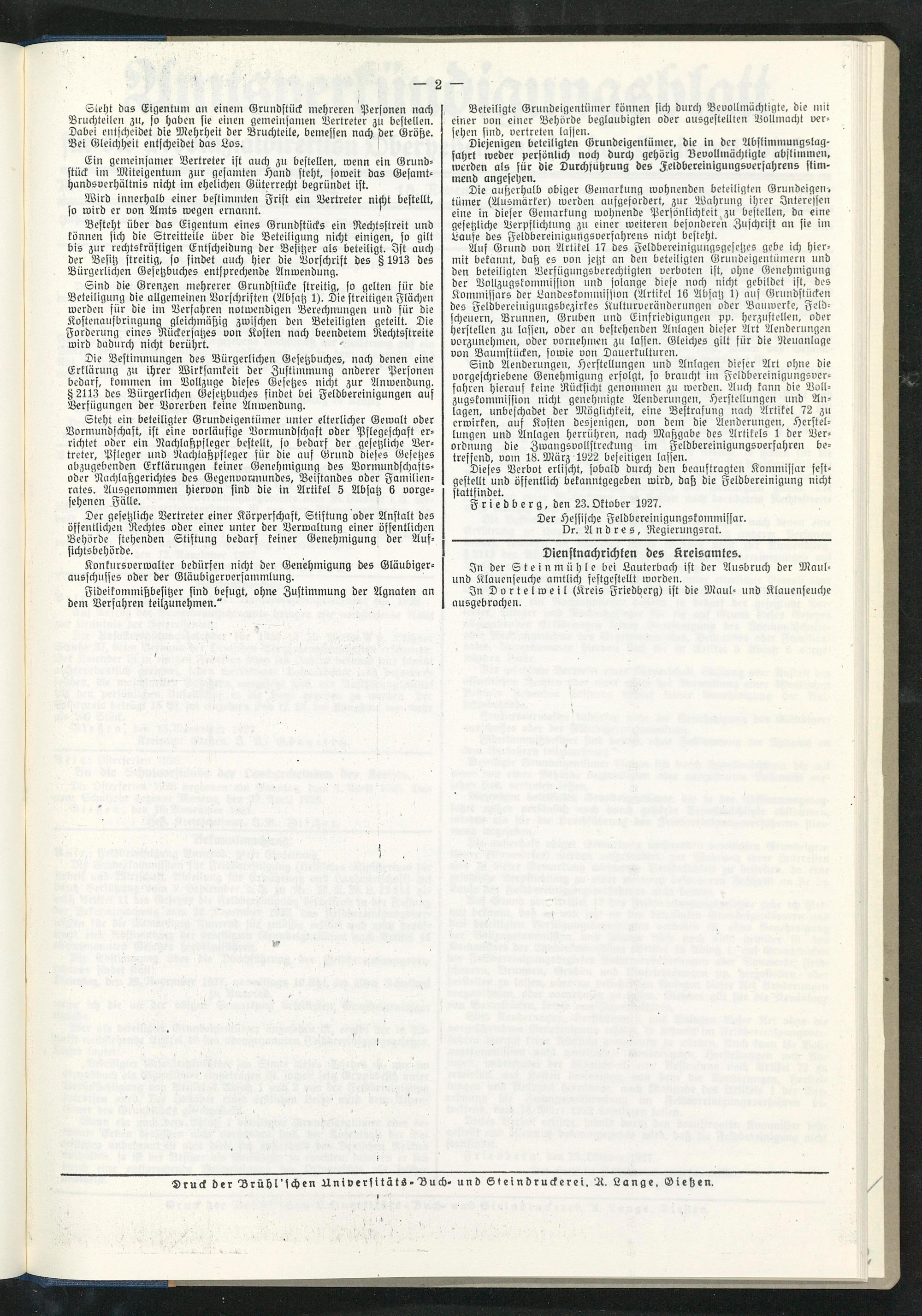 Amtsverkündigungsblatt für die Provinzialdirektion Oberhessen und der Kreisämter Gießen, Friedberg, Büdingen, Lauterbach, Schotten und Alsfeld. 1919-1937