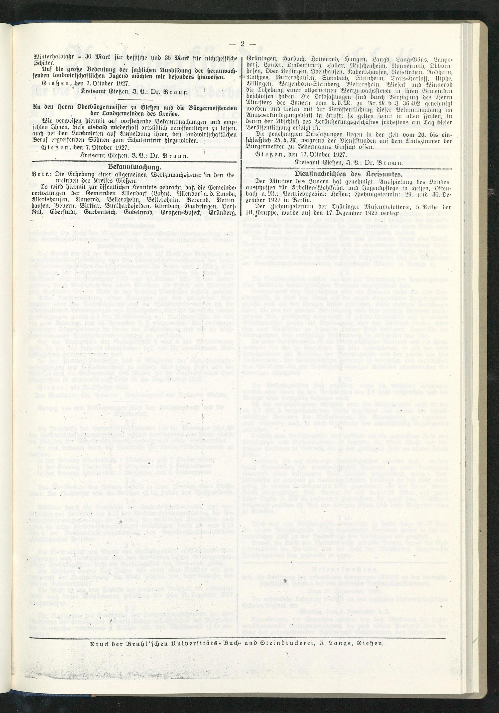 Amtsverkündigungsblatt für die Provinzialdirektion Oberhessen und der Kreisämter Gießen, Friedberg, Büdingen, Lauterbach, Schotten und Alsfeld. 1919-1937
