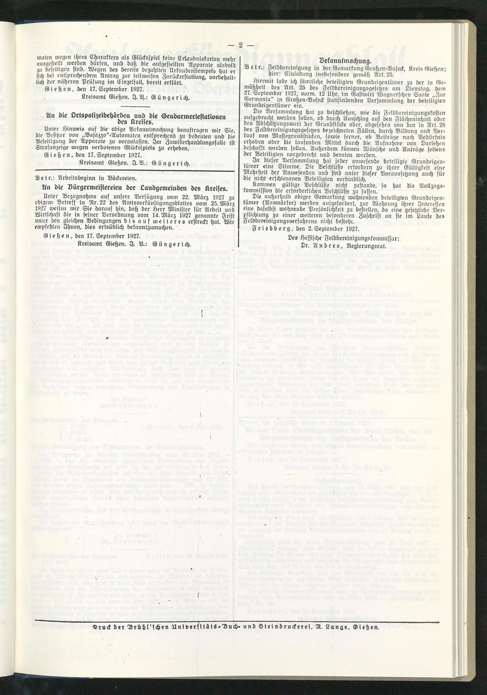 Amtsverkündigungsblatt für die Provinzialdirektion Oberhessen und der Kreisämter Gießen, Friedberg, Büdingen, Lauterbach, Schotten und Alsfeld. 1919-1937