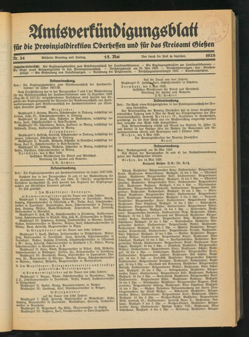 Amtsverkündigungsblatt für die Provinzialdirektion Oberhessen und der Kreisämter Gießen, Friedberg, Büdingen, Lauterbach, Schotten und Alsfeld. 1919-1937