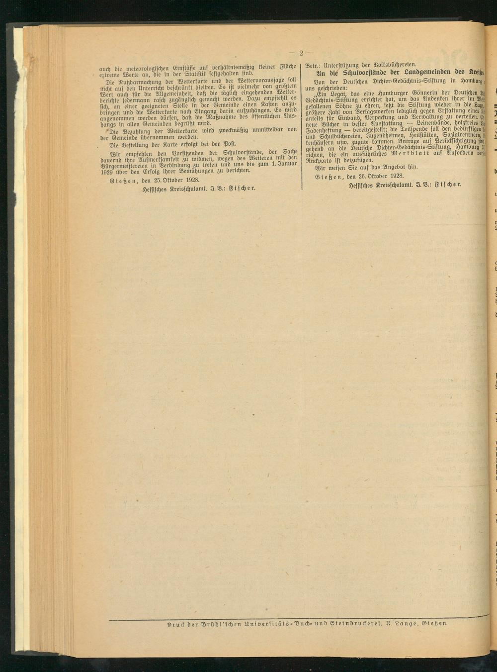 Amtsverkündigungsblatt für die Provinzialdirektion Oberhessen und der Kreisämter Gießen, Friedberg, Büdingen, Lauterbach, Schotten und Alsfeld. 1919-1937