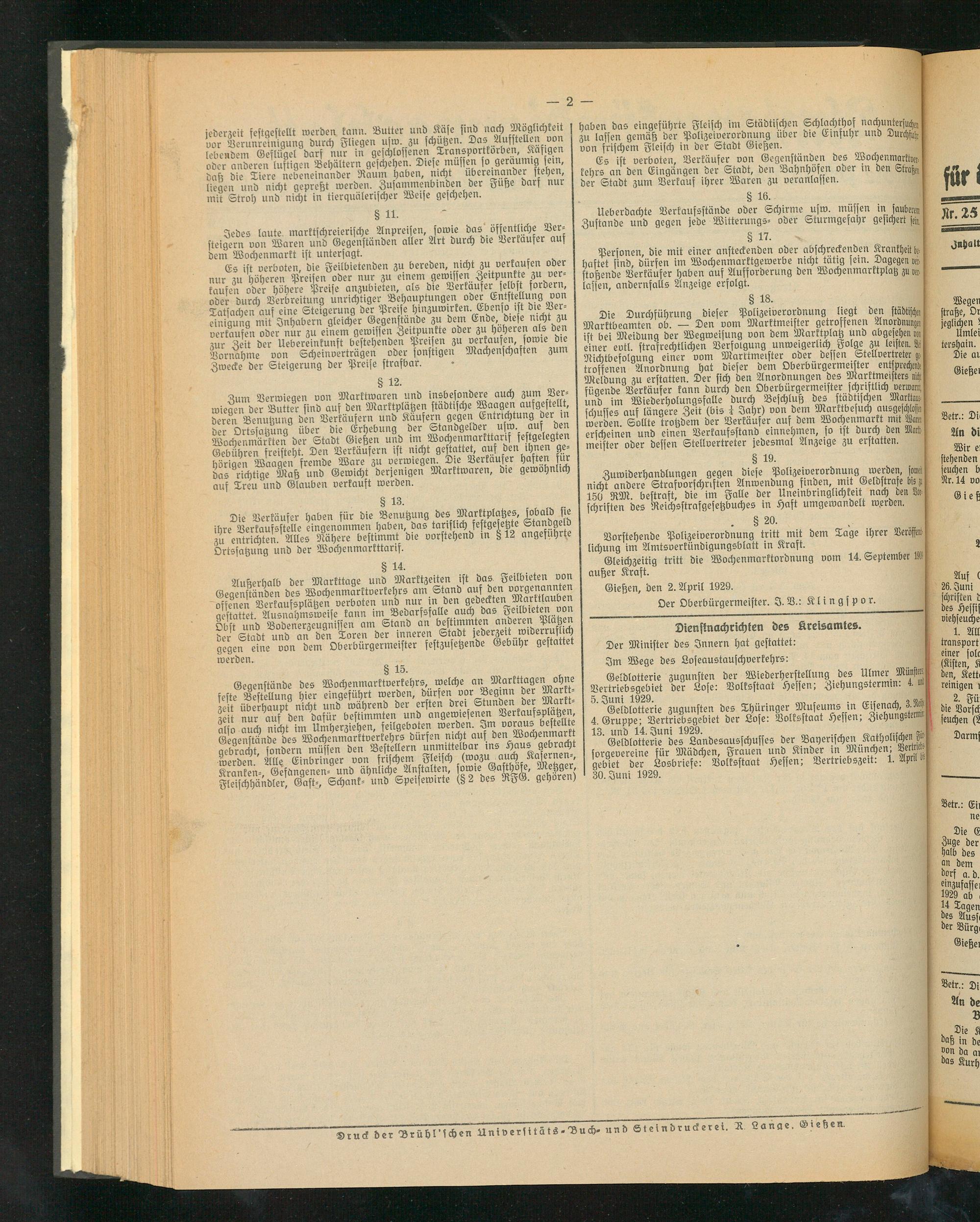 Amtsverkündigungsblatt für die Provinzialdirektion Oberhessen und der Kreisämter Gießen, Friedberg, Büdingen, Lauterbach, Schotten und Alsfeld. 1919-1937