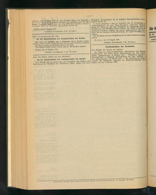 Amtsverkündigungsblatt für die Provinzialdirektion Oberhessen und der Kreisämter Gießen, Friedberg, Büdingen, Lauterbach, Schotten und Alsfeld. 1919-1937