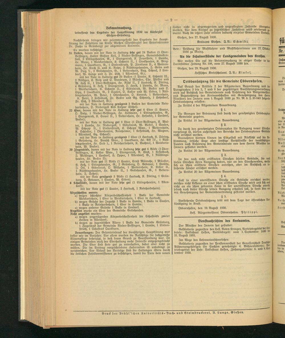 Amtsverkündigungsblatt für die Provinzialdirektion Oberhessen und der Kreisämter Gießen, Friedberg, Büdingen, Lauterbach, Schotten und Alsfeld. 1919-1937