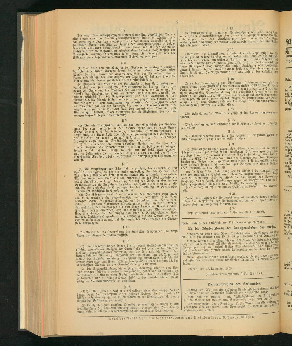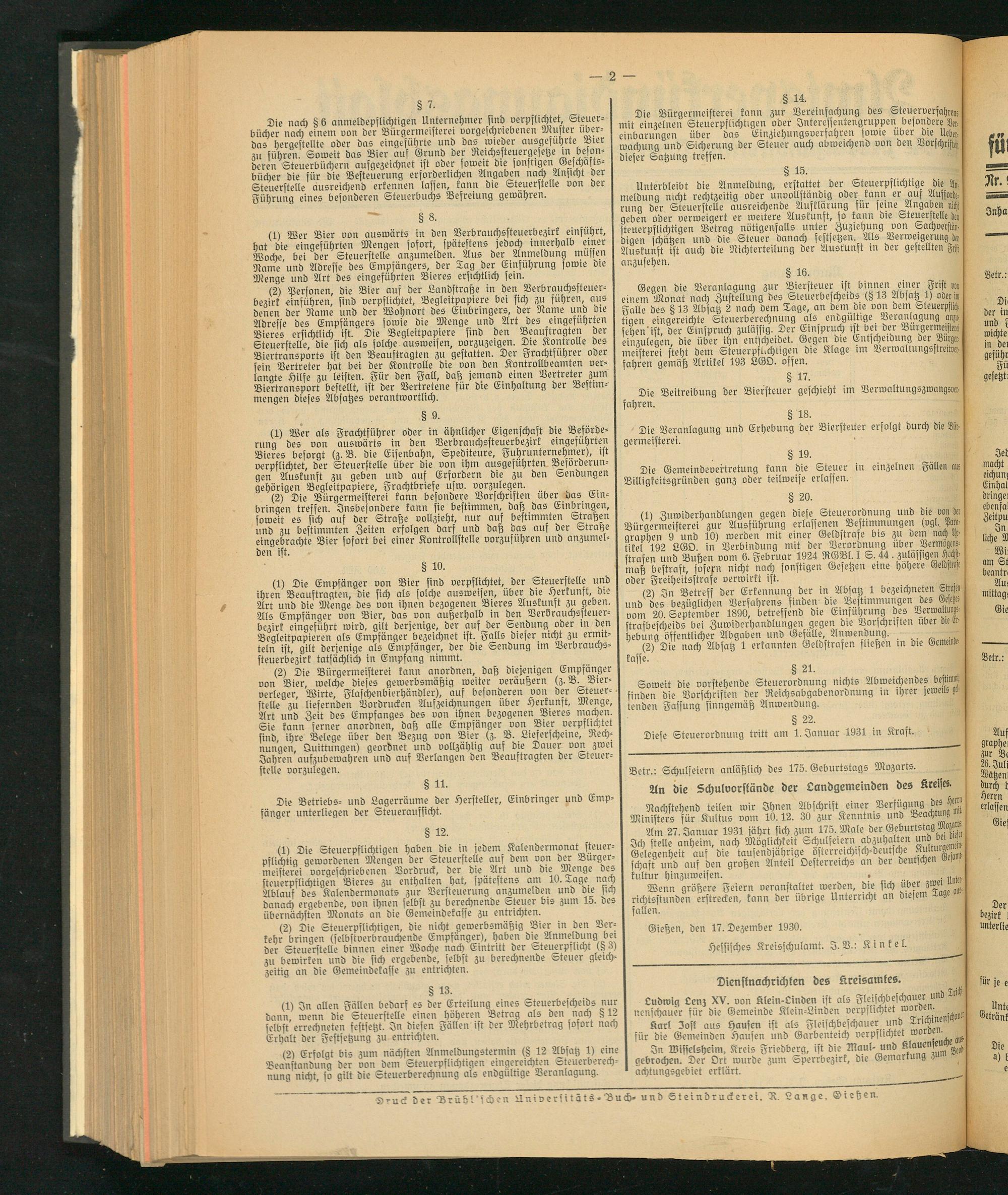 Amtsverkündigungsblatt für die Provinzialdirektion Oberhessen und der Kreisämter Gießen, Friedberg, Büdingen, Lauterbach, Schotten und Alsfeld. 1919-1937