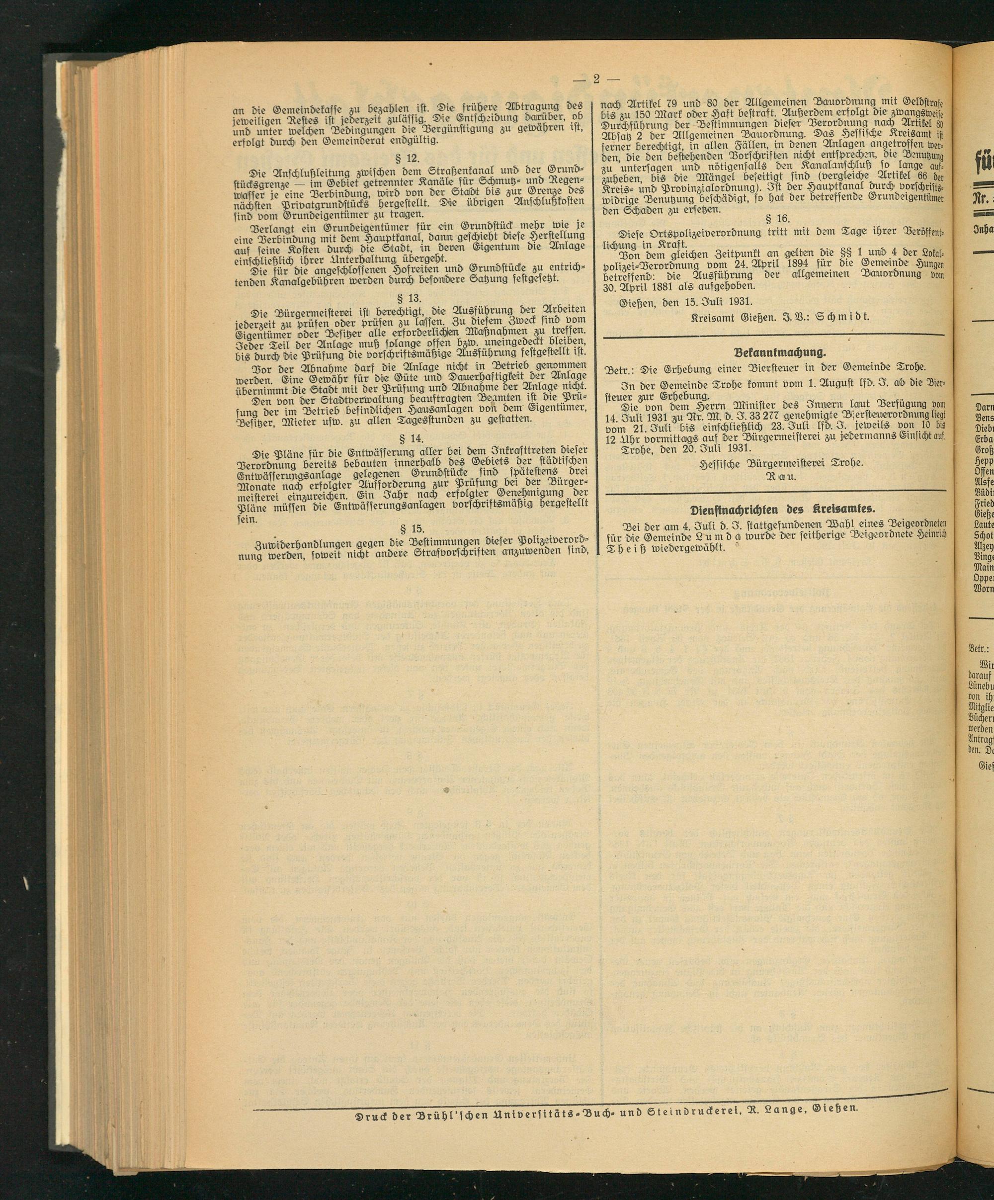 Amtsverkündigungsblatt für die Provinzialdirektion Oberhessen und der Kreisämter Gießen, Friedberg, Büdingen, Lauterbach, Schotten und Alsfeld. 1919-1937