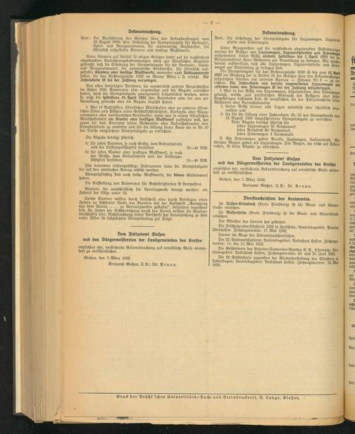 Amtsverkündigungsblatt für die Provinzialdirektion Oberhessen und der Kreisämter Gießen, Friedberg, Büdingen, Lauterbach, Schotten und Alsfeld. 1919-1937