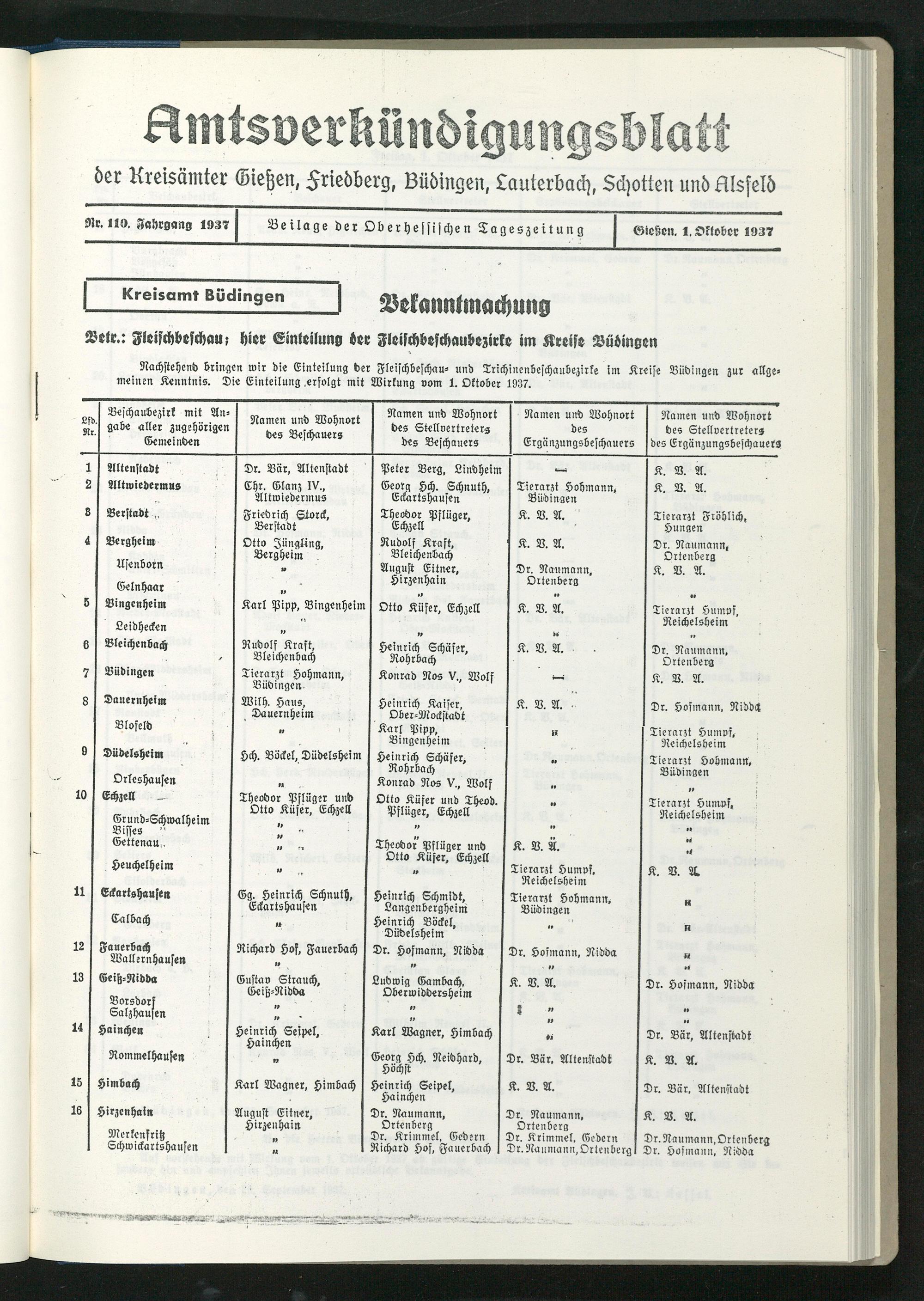 Amtsverkündigungsblatt der Landkreise Gießen, Friedberg, Büdingen, Lauterbach und Alsfeld. 1937-1939