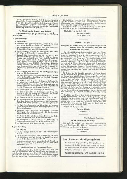 Amtsverkündigungsblatt der Landkreise Gießen, Friedberg, Büdingen, Lauterbach und Alsfeld. 1937-1939