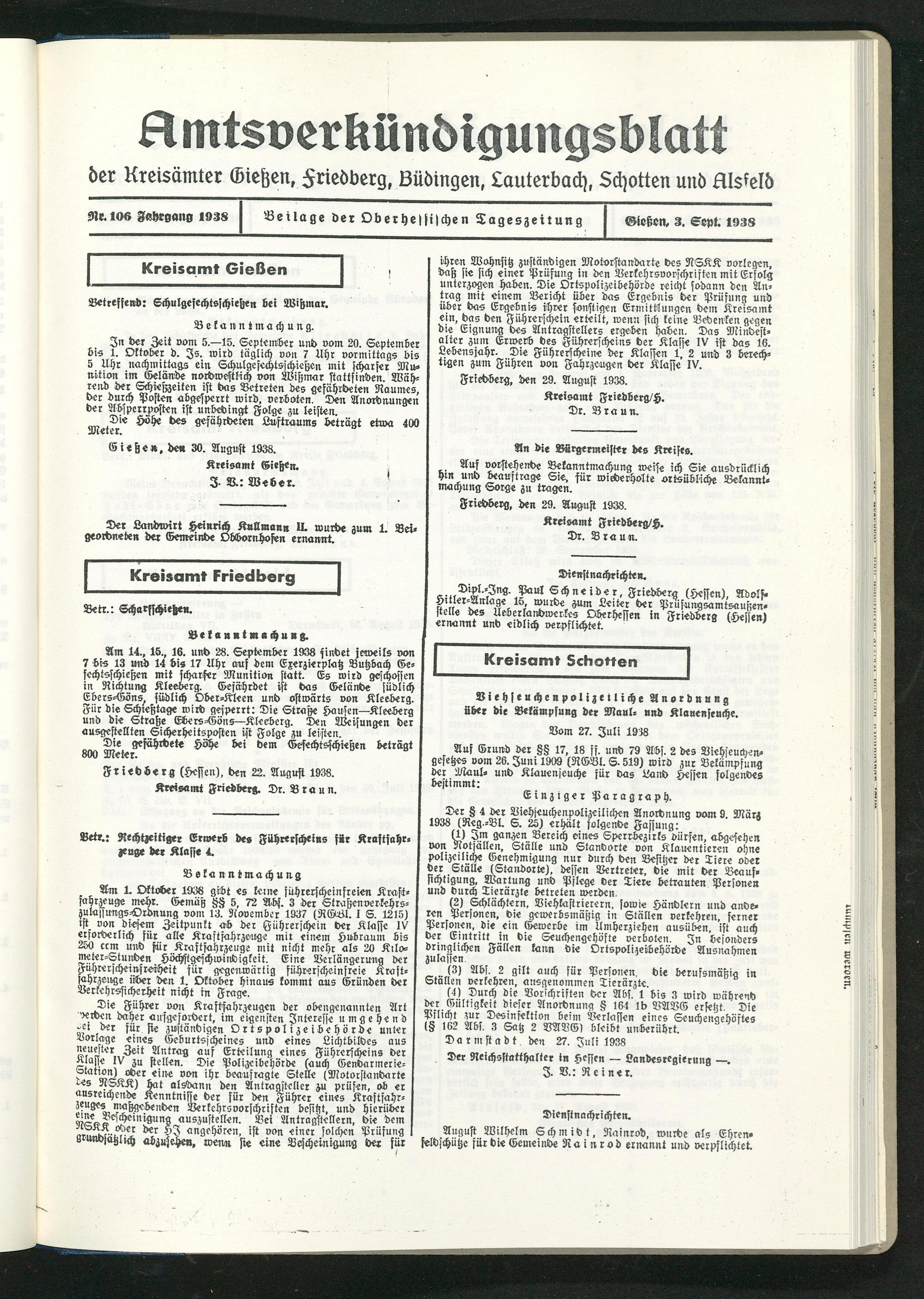 Amtsverkündigungsblatt der Landkreise Gießen, Friedberg, Büdingen, Lauterbach und Alsfeld. 1937-1939