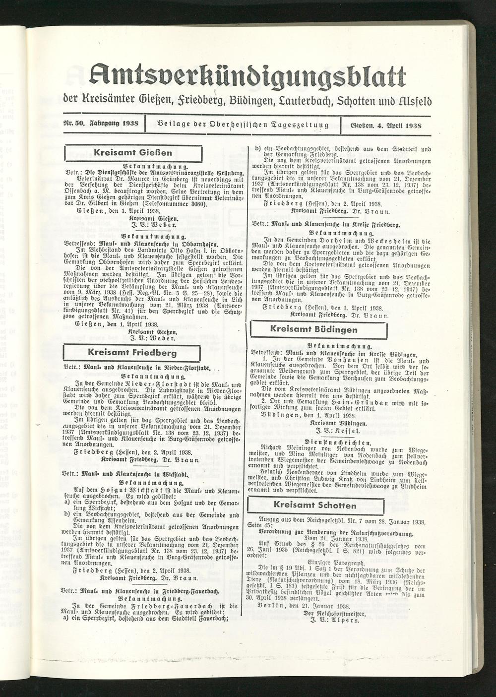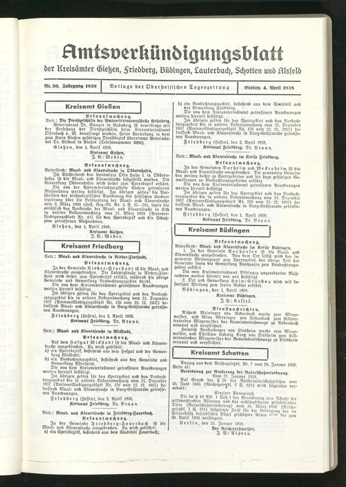 Amtsverkündigungsblatt der Landkreise Gießen, Friedberg, Büdingen, Lauterbach und Alsfeld. 1937-1939