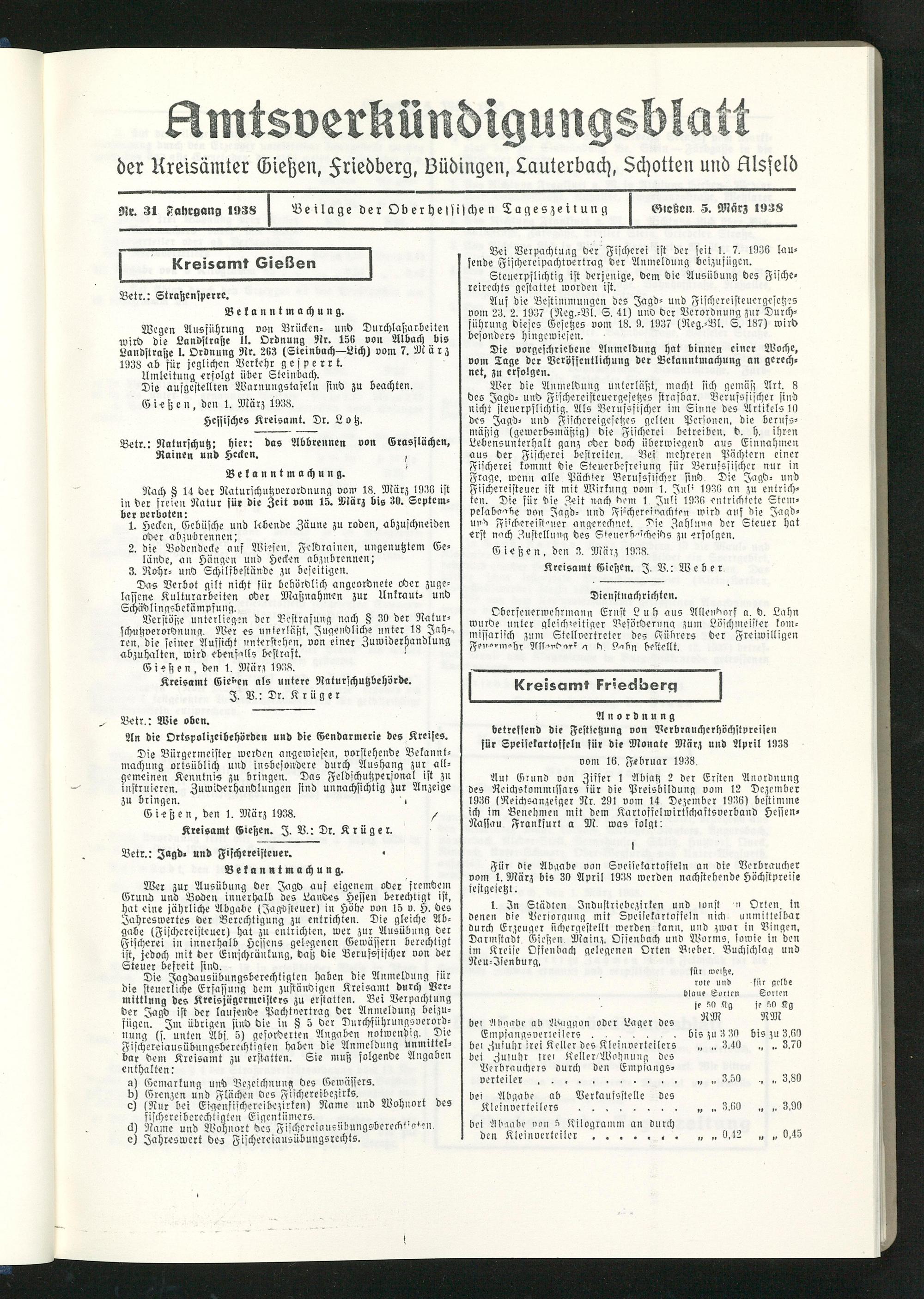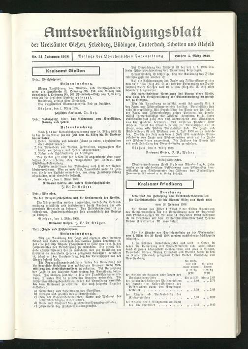 Amtsverkündigungsblatt der Landkreise Gießen, Friedberg, Büdingen, Lauterbach und Alsfeld. 1937-1939