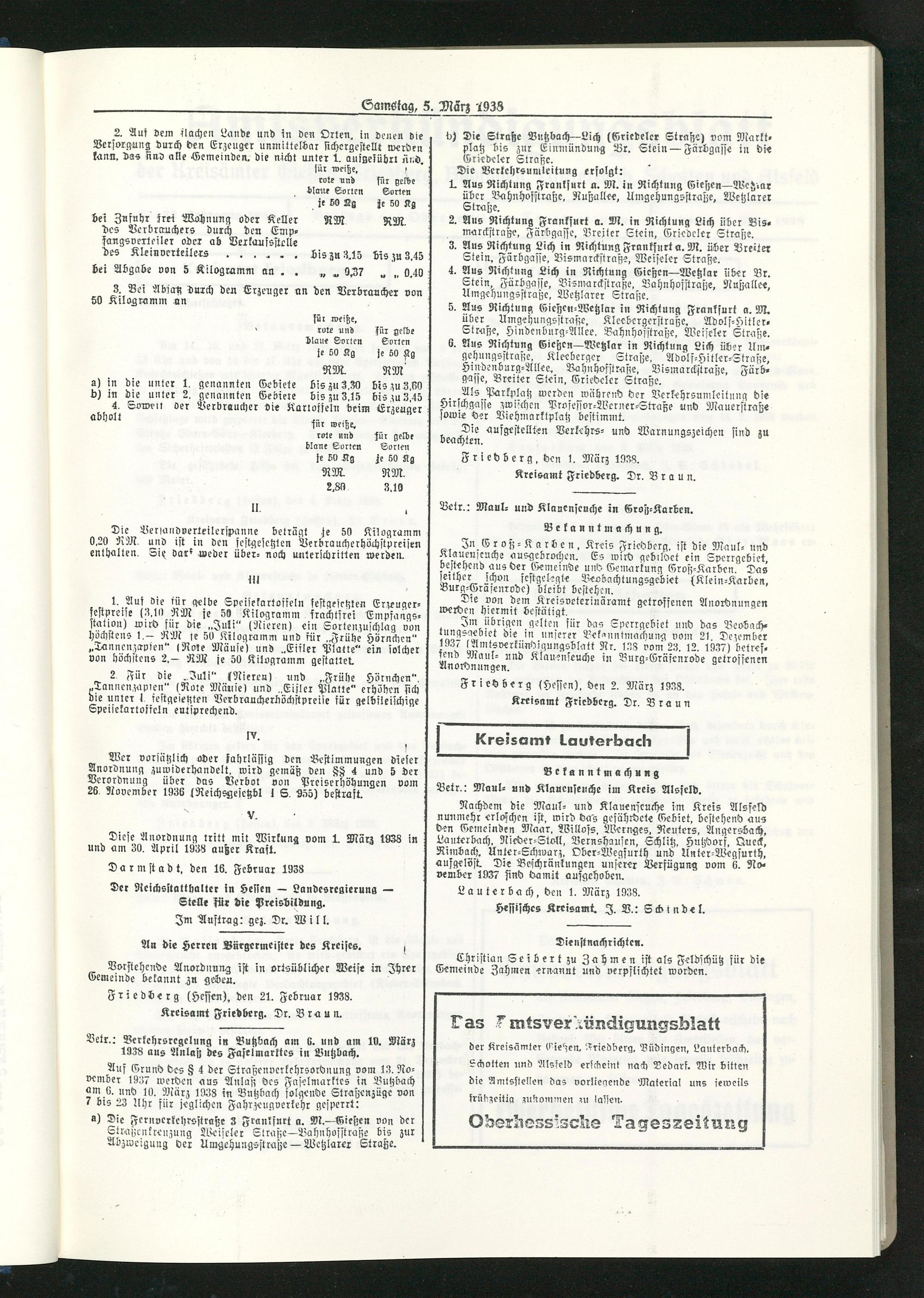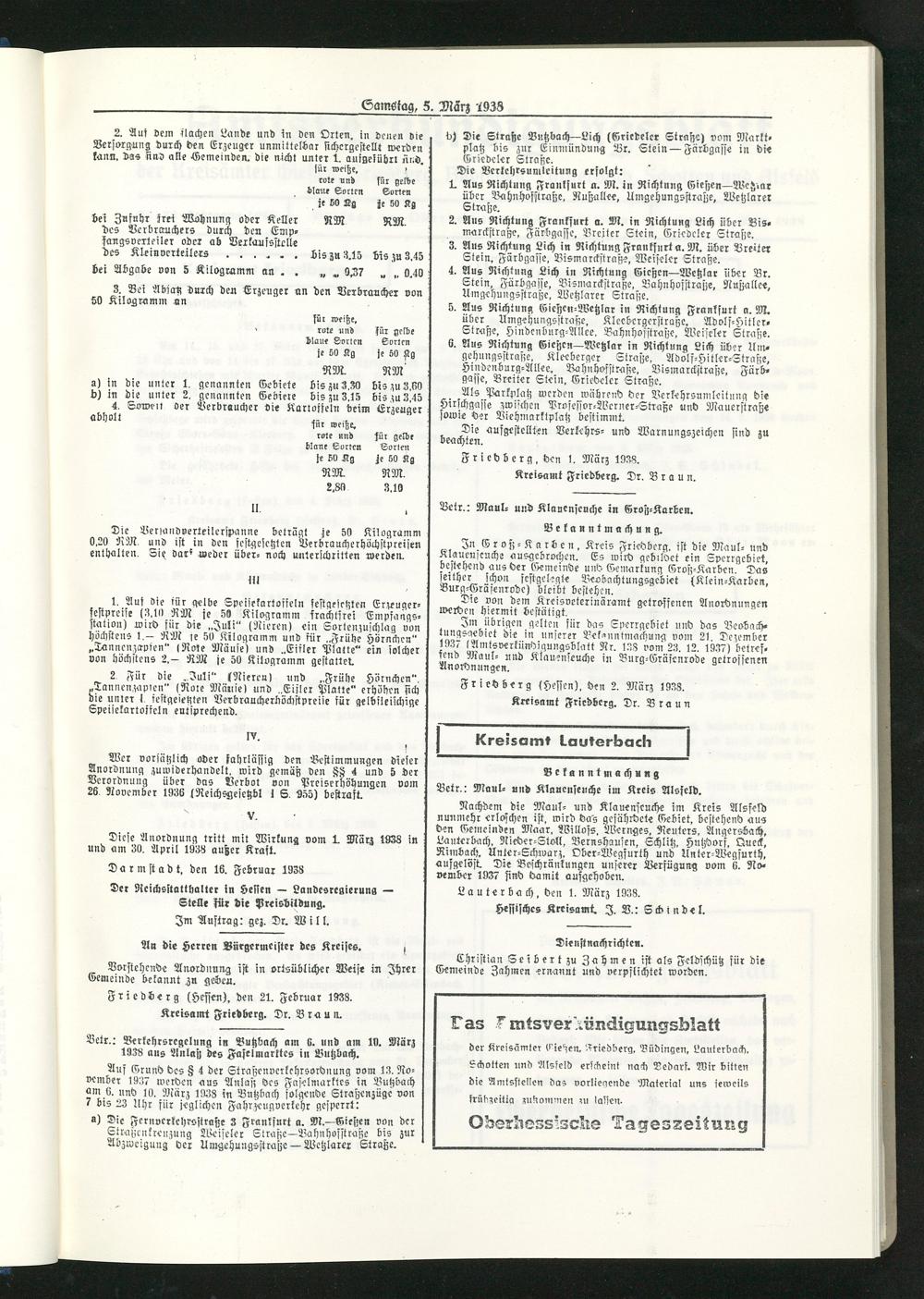 Amtsverkündigungsblatt der Landkreise Gießen, Friedberg, Büdingen, Lauterbach und Alsfeld. 1937-1939
