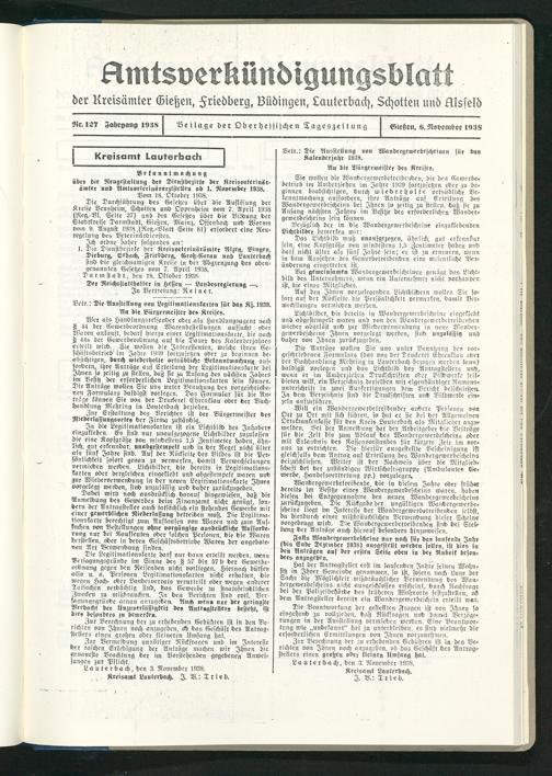 Amtsverkündigungsblatt der Landkreise Gießen, Friedberg, Büdingen, Lauterbach und Alsfeld. 1937-1939