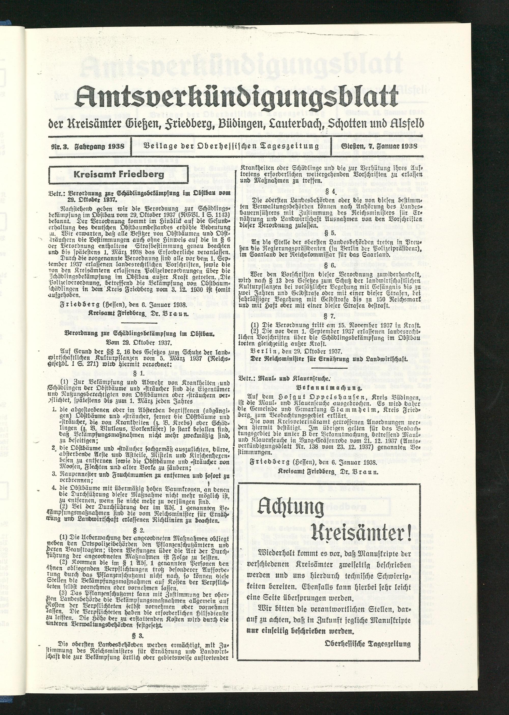 Amtsverkündigungsblatt der Landkreise Gießen, Friedberg, Büdingen, Lauterbach und Alsfeld. 1937-1939