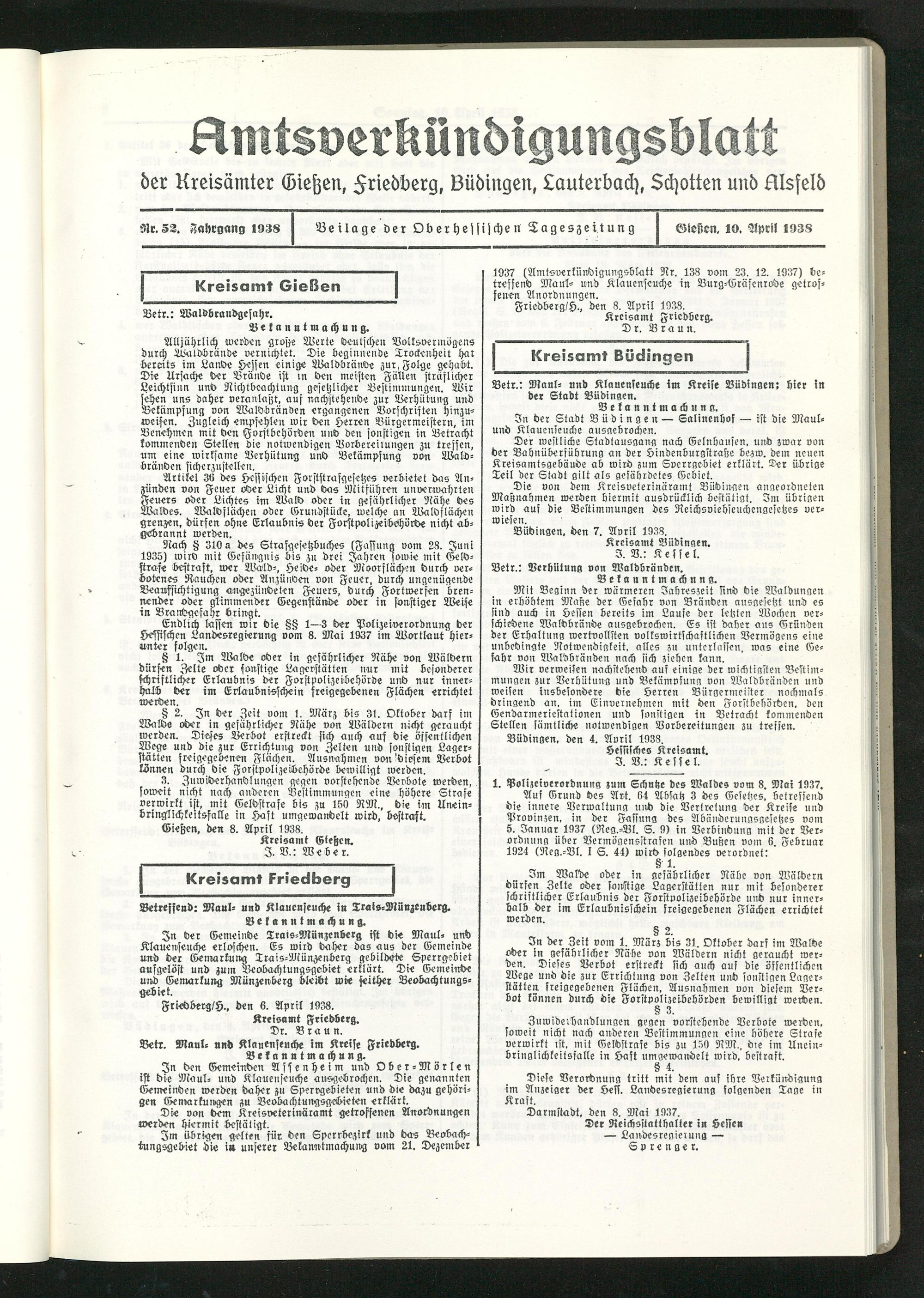 Amtsverkündigungsblatt der Landkreise Gießen, Friedberg, Büdingen, Lauterbach und Alsfeld. 1937-1939