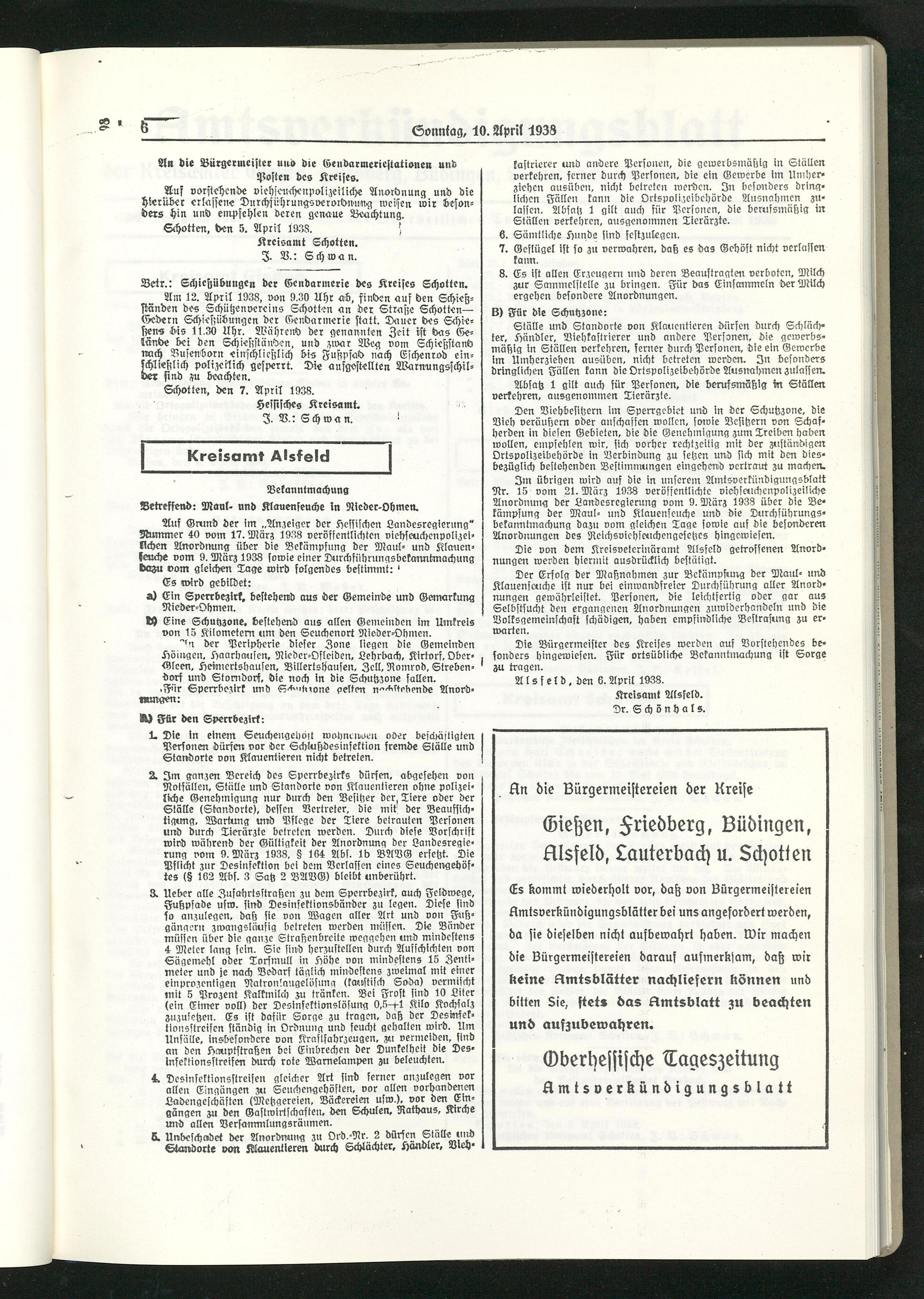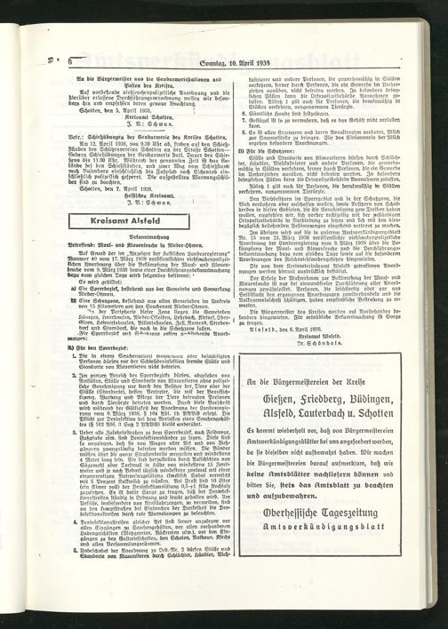 Amtsverkündigungsblatt der Landkreise Gießen, Friedberg, Büdingen, Lauterbach und Alsfeld. 1937-1939