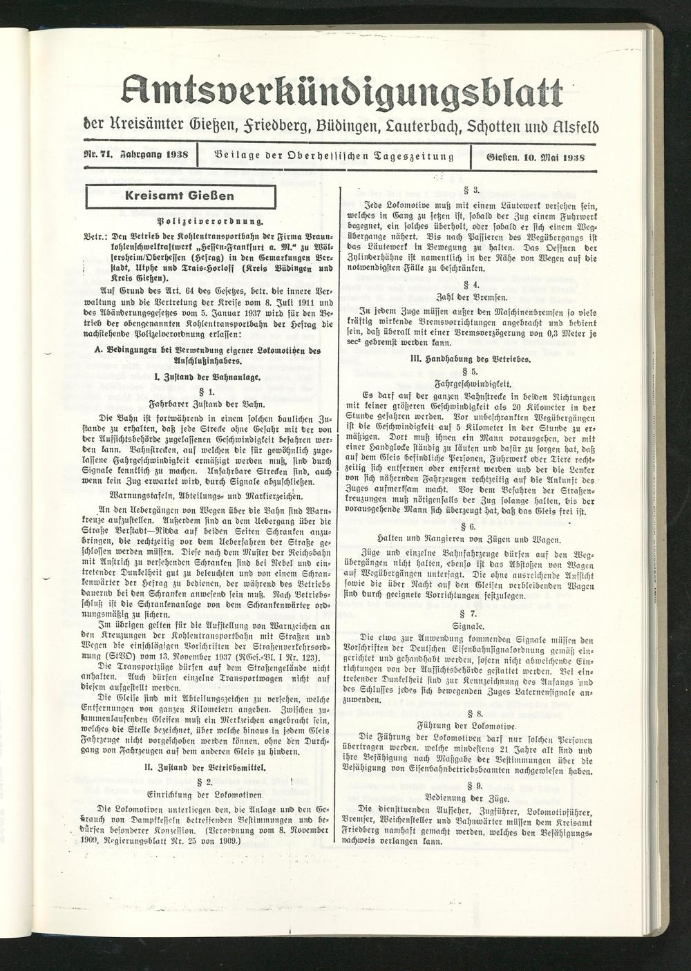 Amtsverkündigungsblatt der Landkreise Gießen, Friedberg, Büdingen, Lauterbach und Alsfeld. 1937-1939