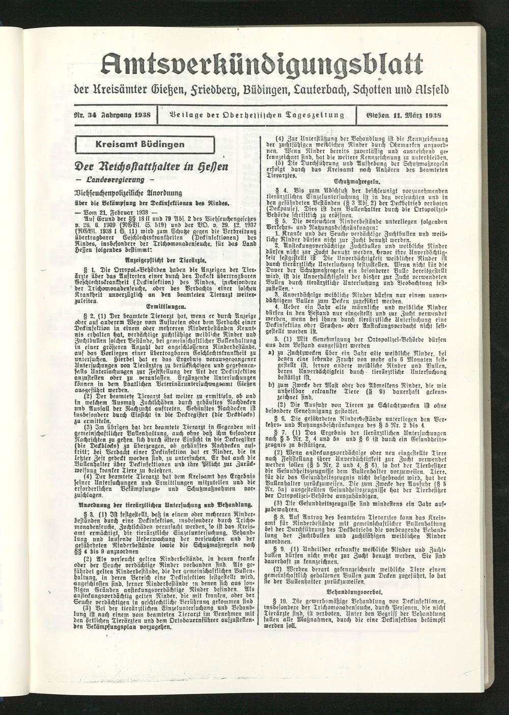 Amtsverkündigungsblatt der Landkreise Gießen, Friedberg, Büdingen, Lauterbach und Alsfeld. 1937-1939