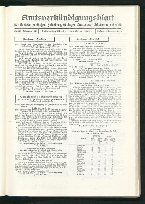 Amtsverkündigungsblatt der Landkreise Gießen, Friedberg, Büdingen, Lauterbach und Alsfeld. 1937-1939