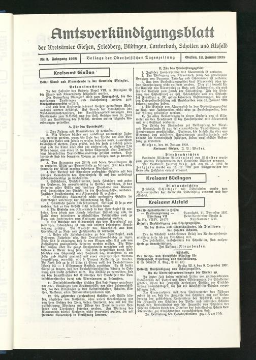 Amtsverkündigungsblatt der Landkreise Gießen, Friedberg, Büdingen, Lauterbach und Alsfeld. 1937-1939