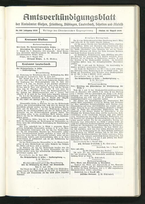 Amtsverkündigungsblatt der Landkreise Gießen, Friedberg, Büdingen, Lauterbach und Alsfeld. 1937-1939
