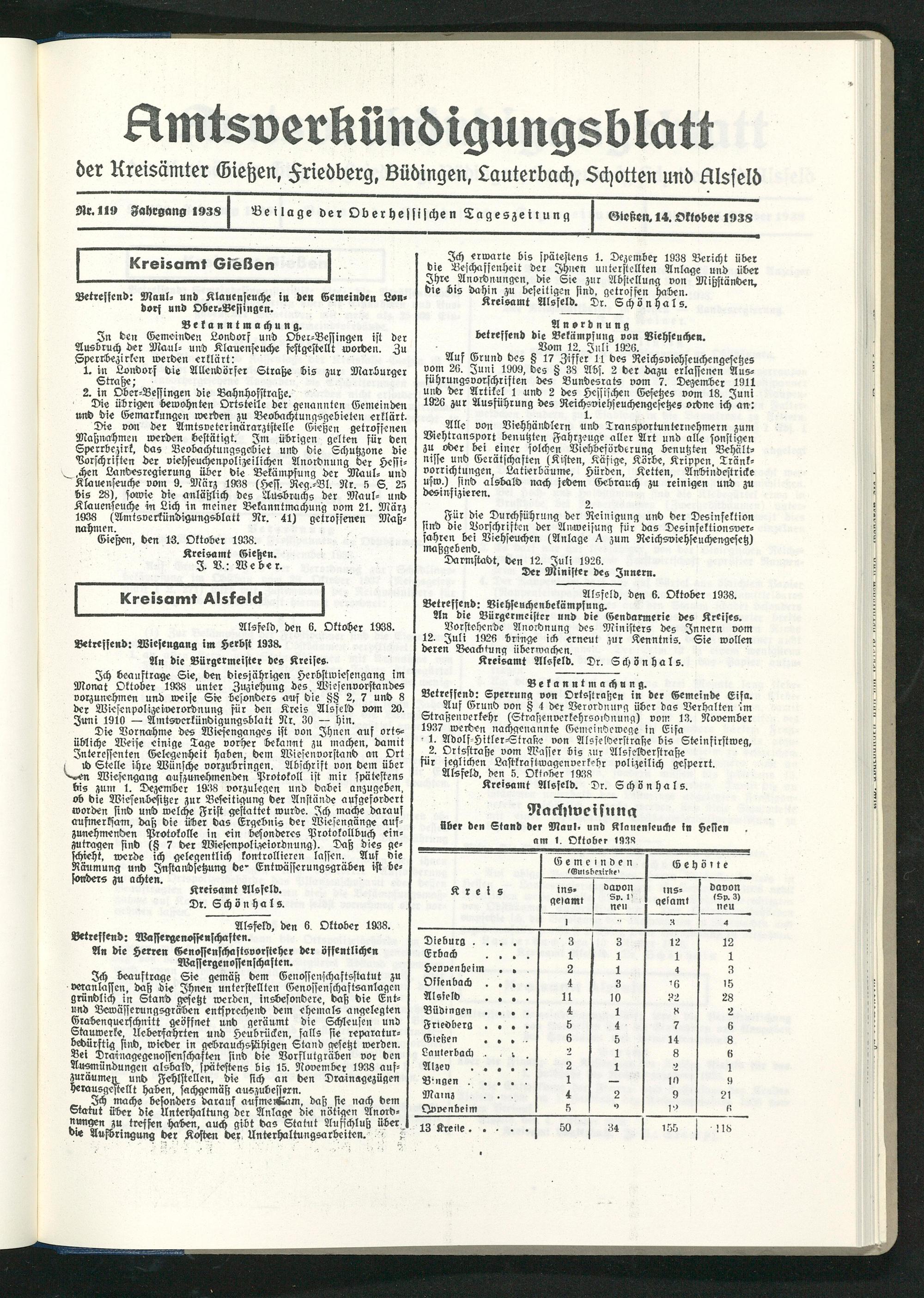 Amtsverkündigungsblatt der Landkreise Gießen, Friedberg, Büdingen, Lauterbach und Alsfeld. 1937-1939