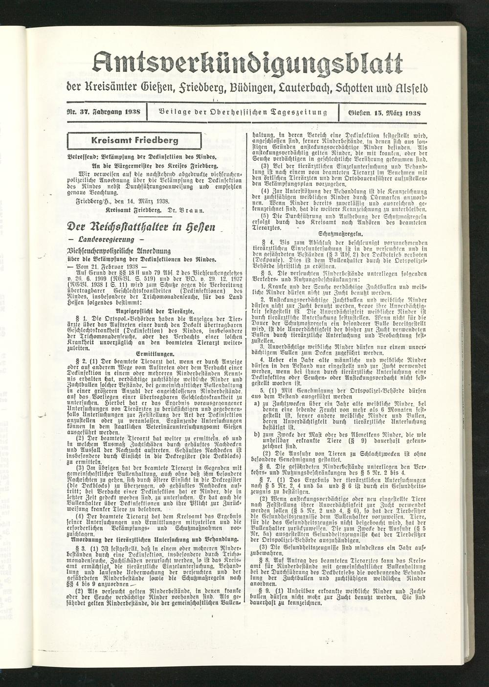Amtsverkündigungsblatt der Landkreise Gießen, Friedberg, Büdingen, Lauterbach und Alsfeld. 1937-1939